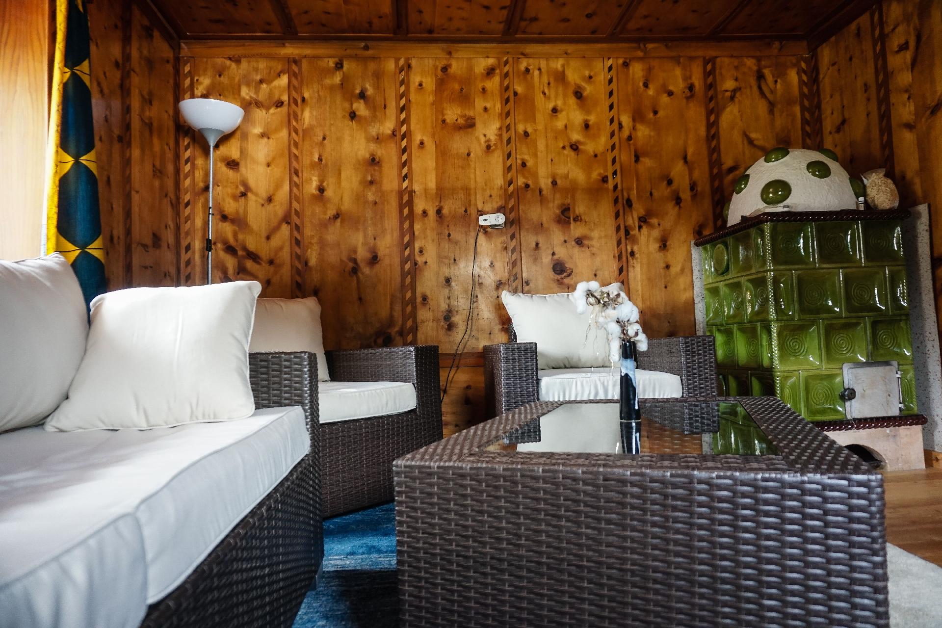 Es erwartet Sie voll ausgestattetes Ferienhaus, welches Tradition und Komfort meisterhaft vereint. Eine gut ausgestattete Küche mit Holzherd, E-Herd, Mikrowelle usw., eine Zirbenstube zum Relaxen mit SAT-TV ausgestattet, schöne gemütliche Zimmer laden zum Entspannen ein. Für Ihr Wohlbefinden sorgen zudem zwei Badezimmer, eines davon mit Jacuzzi, der über Whirl- und Airfunktion, Unterwasserfarblichtwechsler und ein integriertes Soundtool WLAN verfügt sowie einer Infrarotkabine. Fünf geschmackvoll eingerichtete Schlafzimmer, drei davon mit Balkon, bieten Panoramablicke und inkludieren auch jeweils separate Waschbecken – eine praktische Ergänzung zu den Badezimmern.