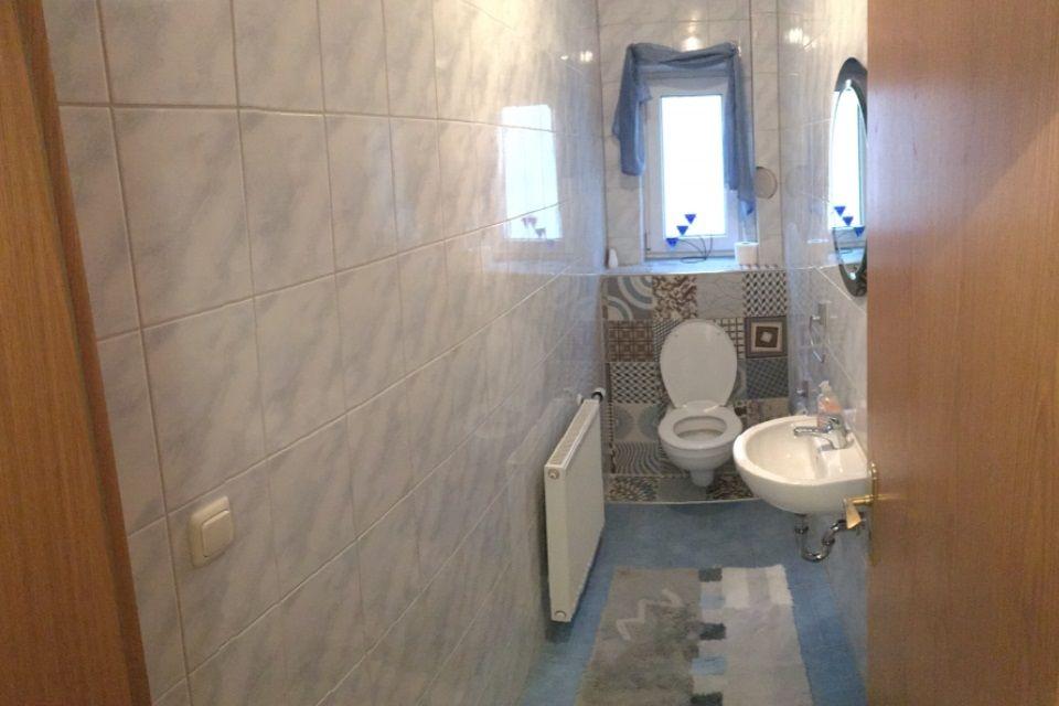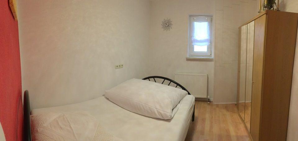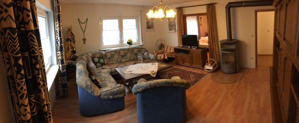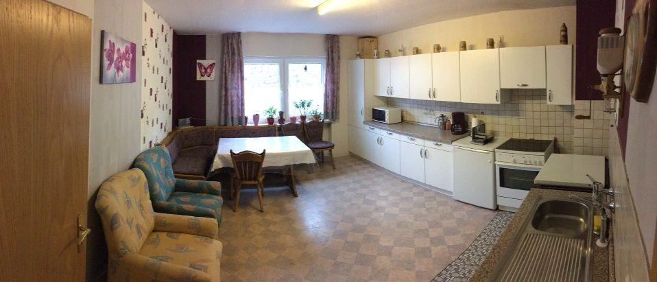 Die ca. 90m² große Ferienwohnung ist komplett mit allem Wichtigen ausgestattet, was Sie zum Ferienwohnen brauchen. In der großen Wohnküche ist die große Küche mit allen wichtigen Utensilien zur Selbstversorgung vorzufinden. Neben einer Spülmaschine sind außerdem noch ein Toaster, ein Wasserkocher, ein Backofen, eine Mikrowelle u.v.m. vorhanden. Die Essecke lädt nach dem Zubereiten und Kochen zum gemeinsamen Speisen ein. Nach einem erlebnisreichen Tag wartet im Wohnzimmer ein Sitzbereich mit Kamin und einem SAT-TV auf Sie. Zwei separate Schlafzimmer bieten allen Reisenden genügend Platz und Rückzugsmöglichkeiten. Während Sie im ersten Schlafraum ein Doppelbett und ein Schlafsofa für eine Person vorfinden, wurde das zweite Schlafzimmer mit einem französischen Bett ausgestattet. Im Wohnbereich finden Sie noch ein Einzelbett (90x200cm) vor. Ebenfalls erwartet Sie ein großes helles Badezimmer mit Dusche, Badewanne, Waschmaschine und einem WC. Ein weiteres separates WC ist außerdem in der Wohnung vorzufinden.