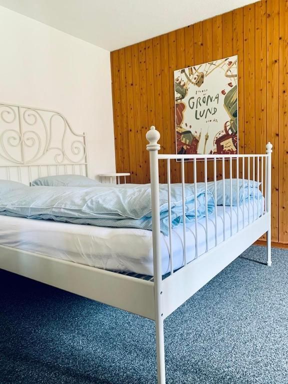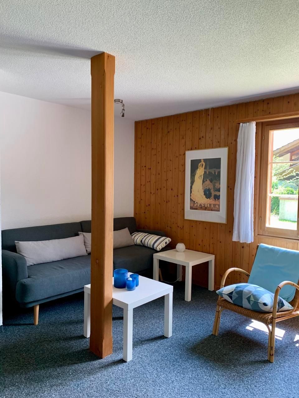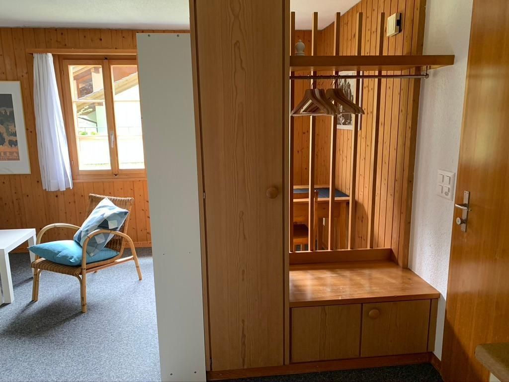 Die helle und geräumige 2-Zimmer-Wohnung im Erdgeschoss kombiniert perfekt moderne Annehmlichkeiten mit dem Hauch traditioneller Gemütlichkeit. Direkt von der Wohnung aus haben Sie Zugang zur Terrasse – ideal für eine erholsame Pause. Die Innenausstattung umfasst ein liebevoll eingerichtetes Wohnzimmer mit Bettsofa, Sessel, Salontischen, einem Büchergestell, TV mit Swisscombox und einer Auswahl an Büchern. Das Schlafzimmer lädt mit Nachtischen, Nachtischlampen, einer Kommode und einem Kleiderständer zum Entspannen ein. Die Küche lässt keine Wünsche offen und bietet neben einer Geschirrspülmaschine auch eine Nespresso-Kaffeemaschine, einen Wasserkocher und diverse Kochutensilien. Für die kleinsten Gäste steht auf Wunsch sogar ein Kinderreisebett bereit.