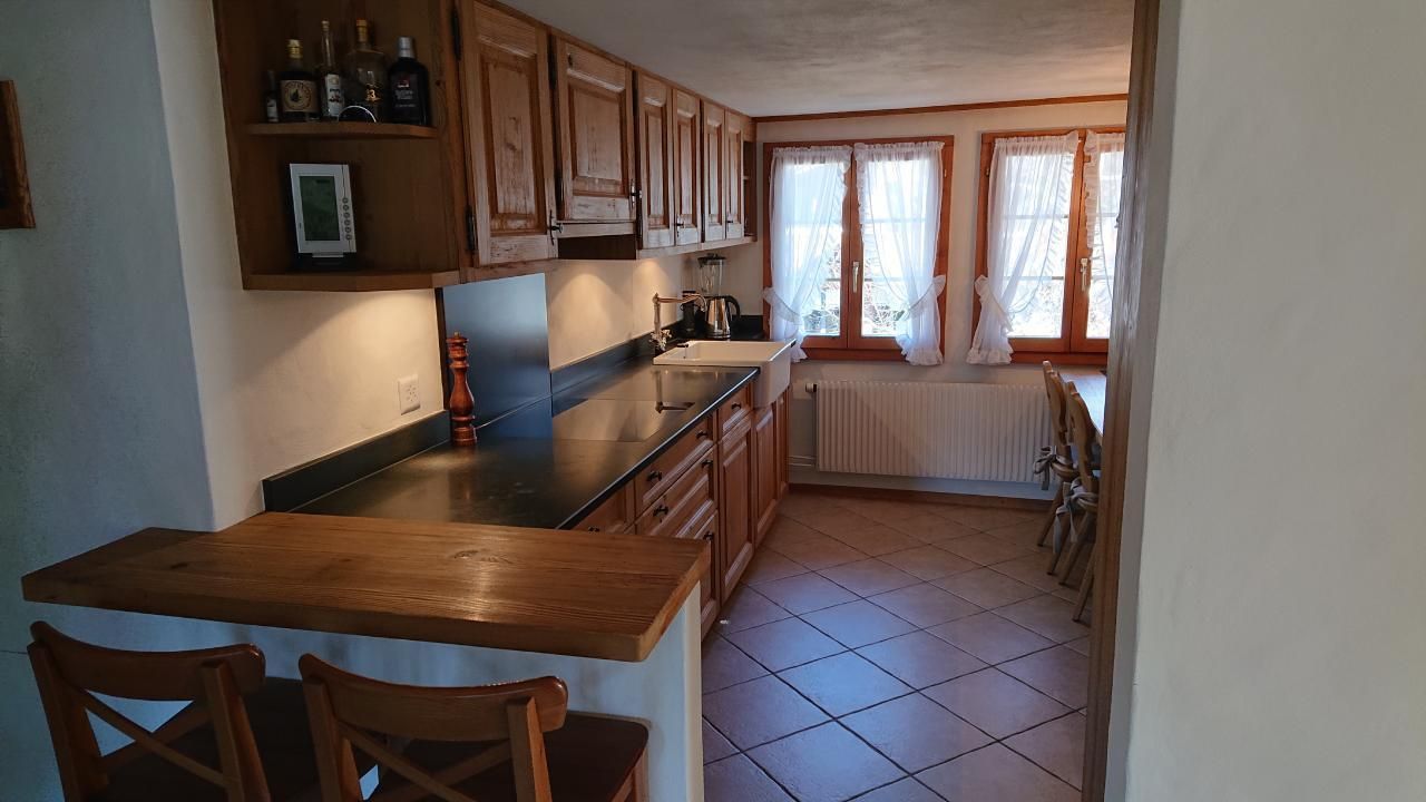 Die Wohnung ist einfach aber praktisch eingerichtet. Sie verfügt über 1 Doppelbett (1.6x2m) und ein Gästebett (1x1.8m). Das Badezimmer hat ein Doppelwaschbecken, eine Badewanne und eine Duschkabine. Die Altholzküche verfügt über eine Abwaschmaschine, Backofen, Dampfgarer und ein Kochfeld. Im Wohnzimmer befindet sich ein kleiner Schwedenofen für gemütliche Stunden und ein Fernseher mit Sateliten empfand. WLAN steht Ihnen frei zur Verfügung.