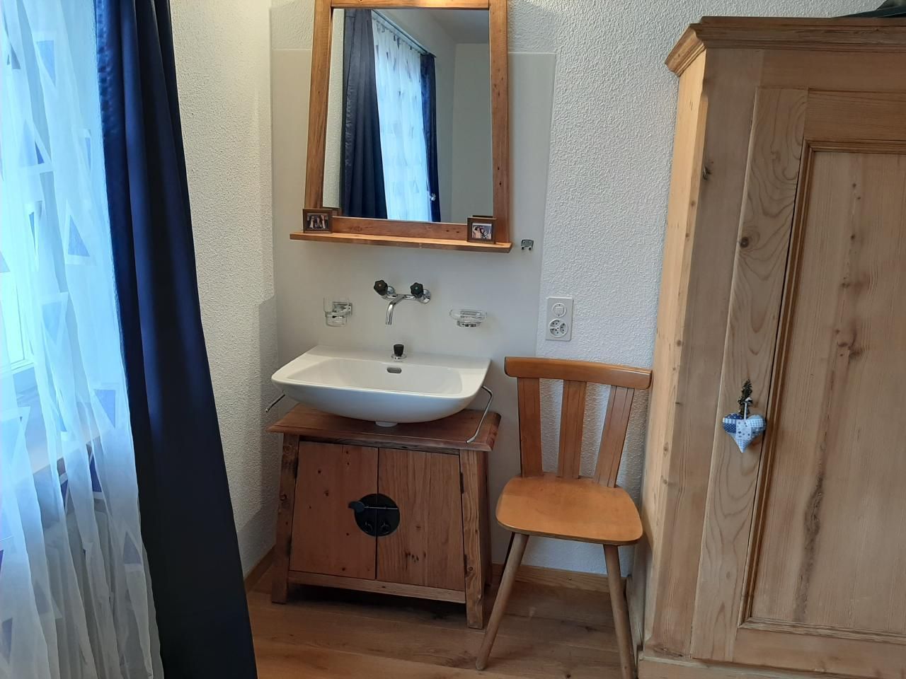 Sonstige Schlafzimmereinrichtung (Schlafzimmer1): Kleiderschrank, Nachttische, Waschbecken mit Kalt-und Warmwasser, Mehrfach-Kleiderhaken