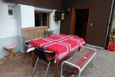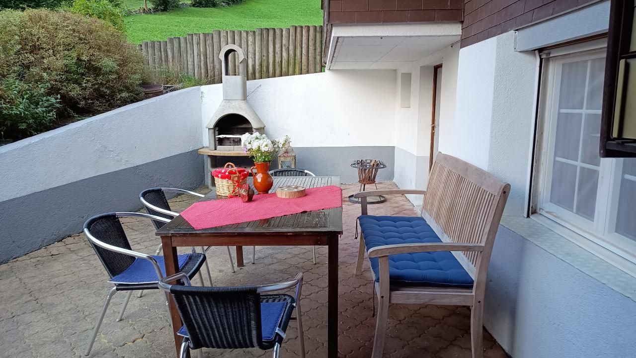 Draußen: Terrasse, Garten, 3 Parkplätze und eine schöne Aussicht mit dem Klang von Kuhglocken!