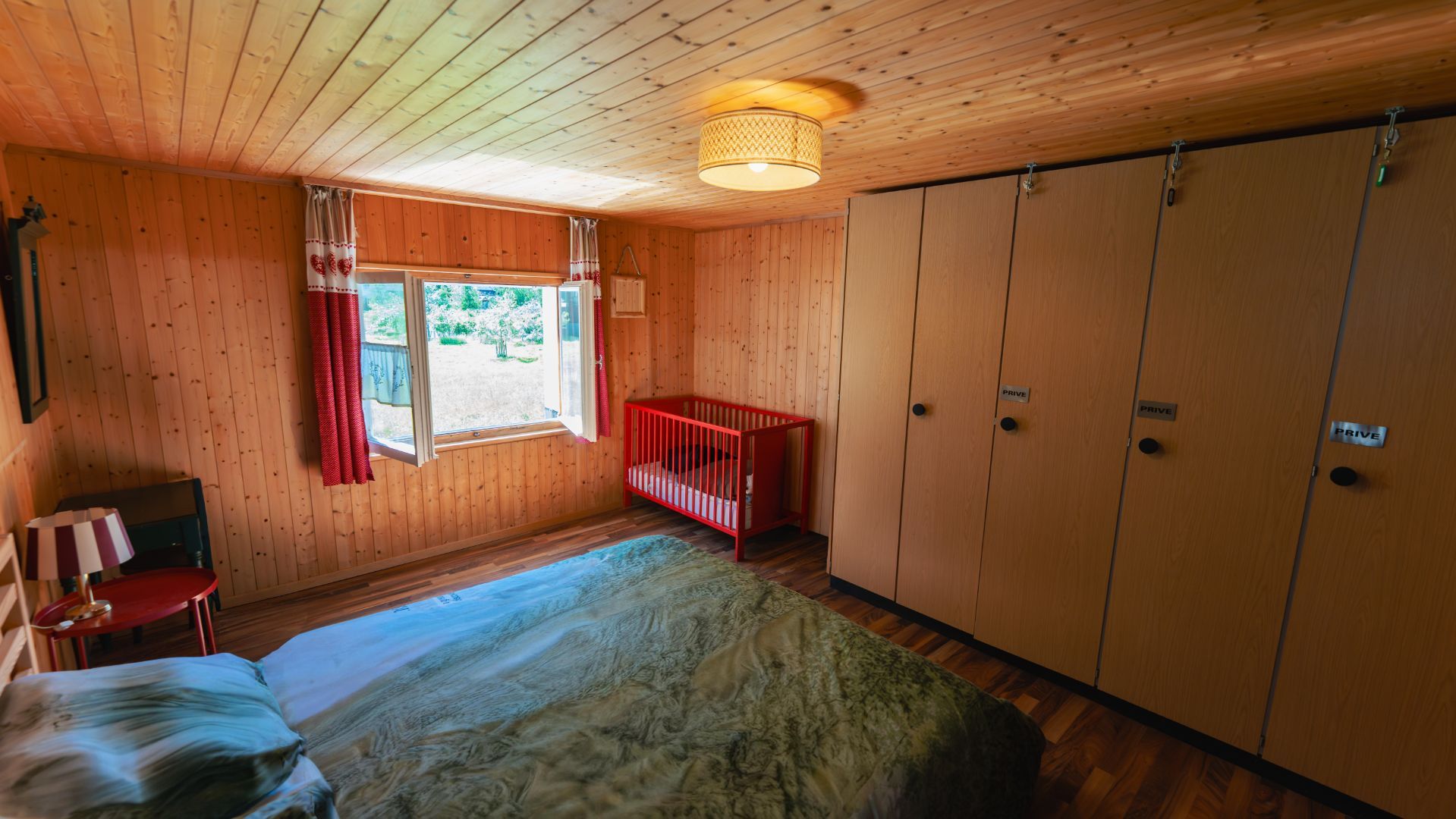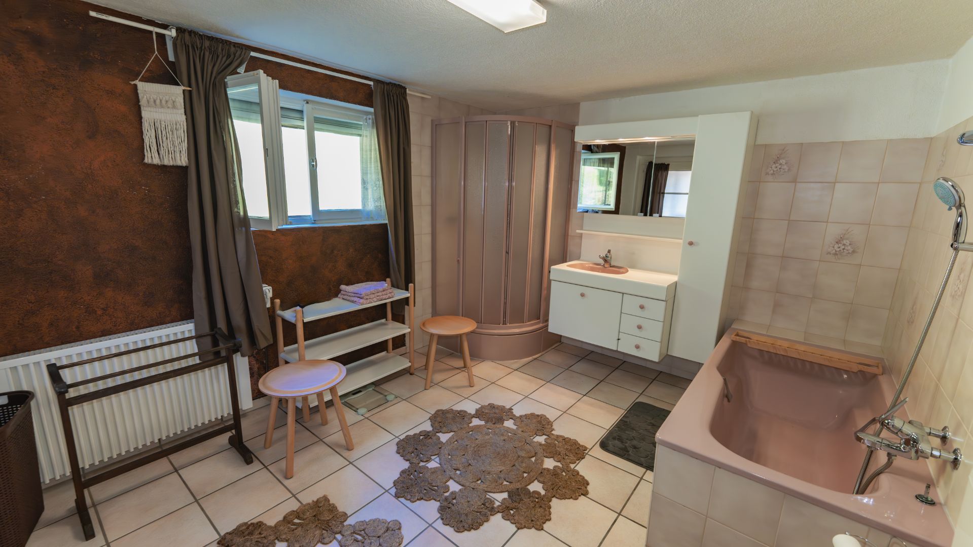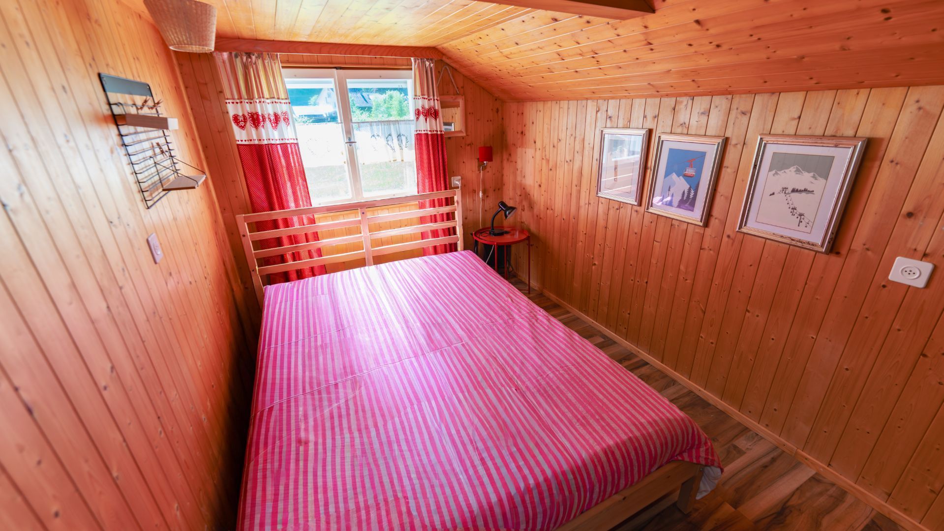 Das Stockwerk kann über 2 verschiedene Treppen/Seiten erreicht werden. Langer Treppenabsatz, 4 Schlafzimmer: Schlafzimmer mit Doppelbett, Schreibtisch, Schlafzimmer mit Doppelbett und Kleiderschrank, Schlafzimmer mit Doppelbett und Einzelbett, Schrank. Schlafzimmer zwischen Treppenabsatz und Badezimmer mit Doppelbettcouch. Badezimmer mit Toilette, Badewanne, Waschbecken und Dusche .