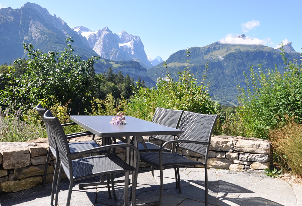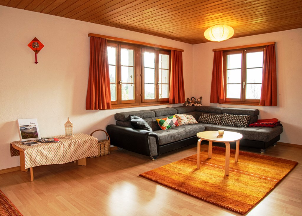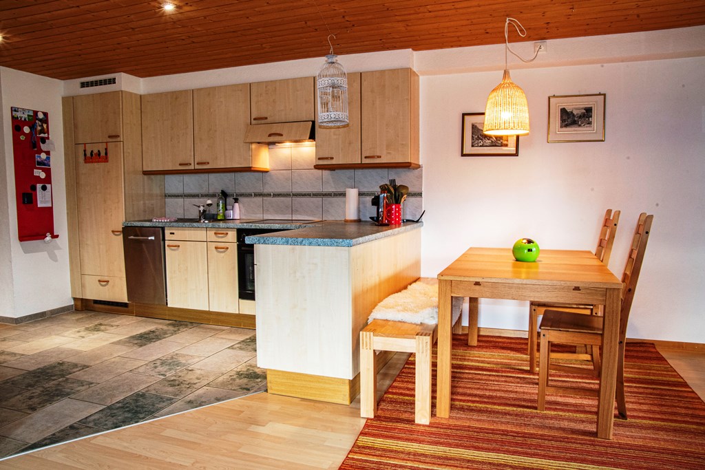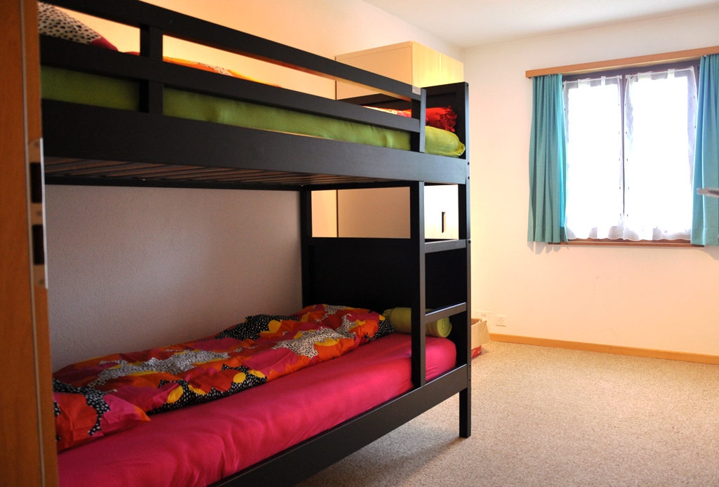 Die 3 1/2 Zimmer Wohnung im Parterre ist eine gemütliche Unterkunft für Familien, Paare und Singles. Küche, Esstisch und Stube sind ein offener Raum. Die Küche ist gut ausgerüstet mit Backofen, Abwaschmaschine, Nespresso Kaffeemaschine usw. Swisscom TV ermöglichen Ihnen beste TV Qualität und eine gute W-LAN Verbindung. Zwei Zimmer mit je einem Doppelbett und einem Kajutenbett bieten die Schlafräume. Das Badezimmer ist mit einer Badewanne, WC und Lavabo aus gerüstet. Zur Südseite hin erstreckt sich eine Terrasse mit Gartenbestuhlung und Liegestühle. Im Erdgeschoss befindet sich eine Waschküche zur Mitbenutzung.
