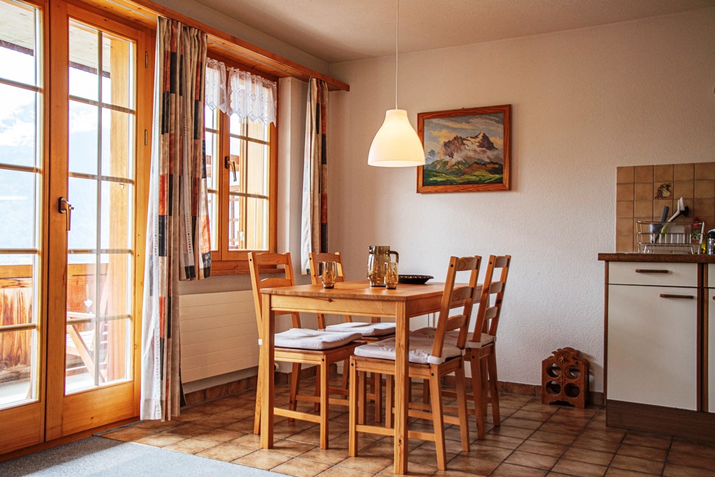 Das Chalet Diana liegt in Hasliberg Reuti, im unteren Dorfteil. Der untere Staldacher ist eine Wohnsiedlung wo Einheimische sowie Feriengäste leben. Die Gondelbahnstation, Dorfladen, Spielplatz sowie auch Restaurants sind in wenig Zeit, zu Fuss, erreichbar. Der Parkplatz, der zur Ferienwohnung gehört, liegt am Anfang der Treppe, die zum Haus hoch führt. Über die letzten Stufen neben dem Haus, gelangen Sie zur Eingangstüre im ersten Stock. Der Balkon, mit Bestuhlung, lädt ein das wunderbare Panorama zu geniessen.