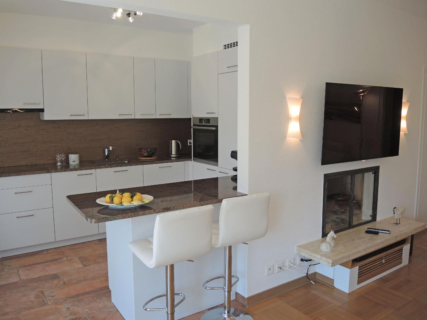 Die gepflegte 3.5 Zimmer-Ferienwohnung bietet Platz für 4 Personen und umfasst einen grosszügigen Wohn-Essbereich mit offener Küche und einer grossen Terrasse (16 m2), die mit einem Esstisch ausgestattet ist. Grosse, offene Küche mit Frühstücksbar und Ausgang zur Terrasse. Der Wohn-Essbereich bietet ein gemütliches Ledersofa mit Salontisch, einen Fernsehsessel und einen Esstisch mit 4 Sitzplätzen sowie einen grossen Flatscreen-TV mit Internetverbindung. Die beiden Schlafzimmer sind mit je einem Doppelbett und Kleiderschränken ausgestattet, in einem Zimmer befindet sich ein Schreibtisch, falls Sie Ihre Urlaub geschäftlich verbinden möchten. Badezimmer mit Dusche, WC und Waschtisch. Ihr Auto können Sie auf dem zur Residenz gehörenden Aussenparkplätzen abstellen.