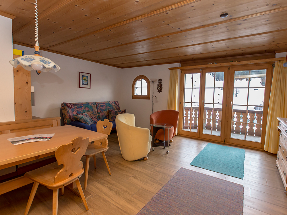 Das Haus am Platz befindet sich mitten im Bergdorf St. Antönien. Die Postautohaltestelle ist direkt vor dem Haus. Eine Einkaufsmöglichkeit mit Postdienstleistungen ist im Volg Laden, wenige Gehminuten von der Wohnung entfernt, vorhanden. Die Wohnung ist mit viel Komfort ausgestattet und hat einen grandiosen Ausblick auf die St. Antönier Bergwelt vom sonnigen Südbalkon aus. Im Winter kann der Skilift über eine kleine Zubringerpiste direkt hinter dem Haus erreicht werden.