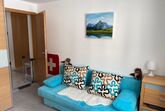 Im Inneren erwartet Sie ein freundliches Wohnambiente mit einem ausziehbaren Sofa im Wohnzimmer, das gemeinsame Abende versüßt. Die Küche ist bestens ausgestattet, unter anderem mit einer Nespresso-Kaffeemaschine für Ihren Morgenkaffee und einem ausziehbaren Esstisch, der bis zu 12 Personen Platz bietet. Für Kinder oder zusätzliche Gäste können in den Schlafzimmern vorhandene Koffermatratzen auf den Boden gelegt werden, was die Wohnung äußerst anpassungsfähig macht.