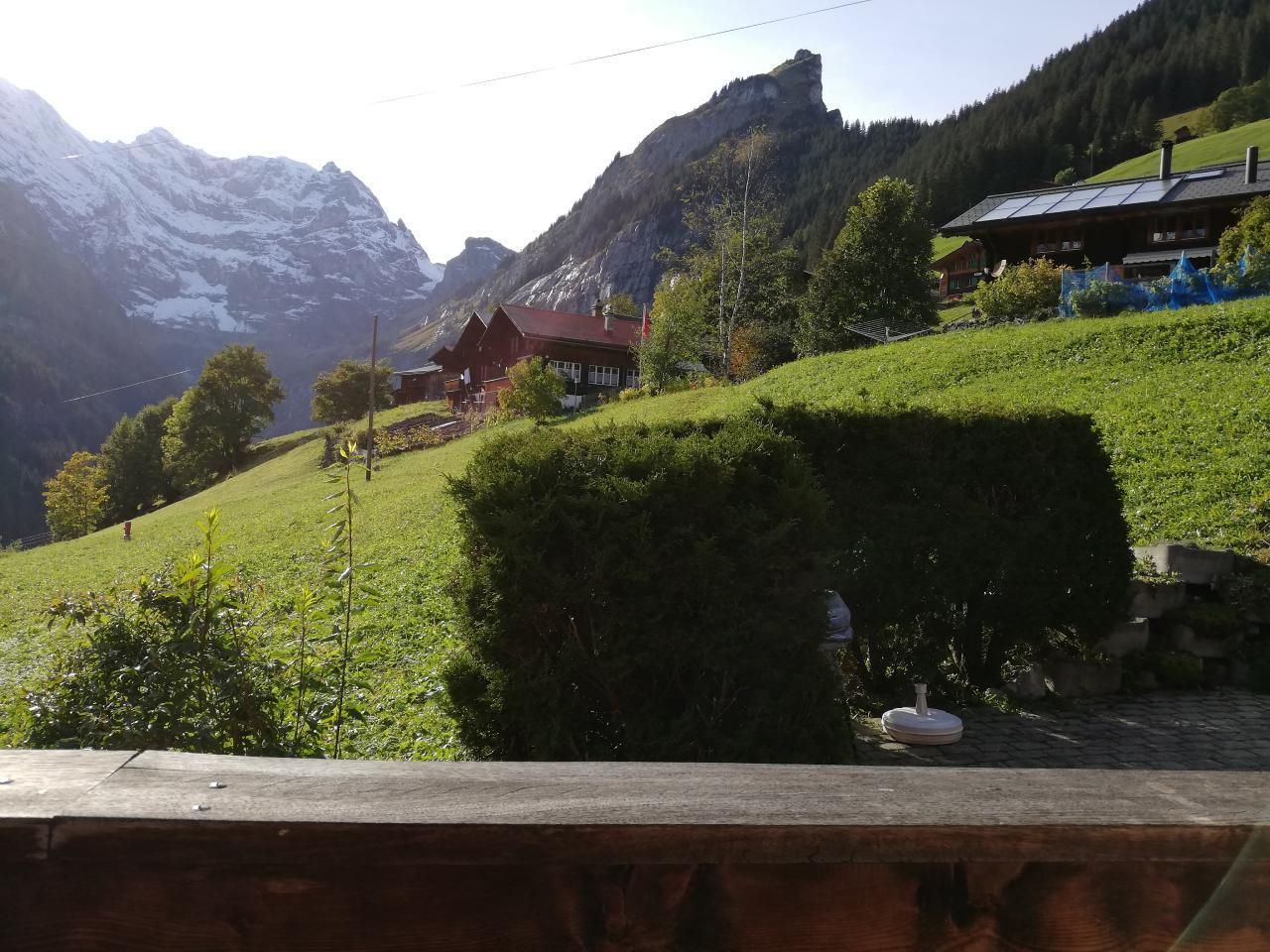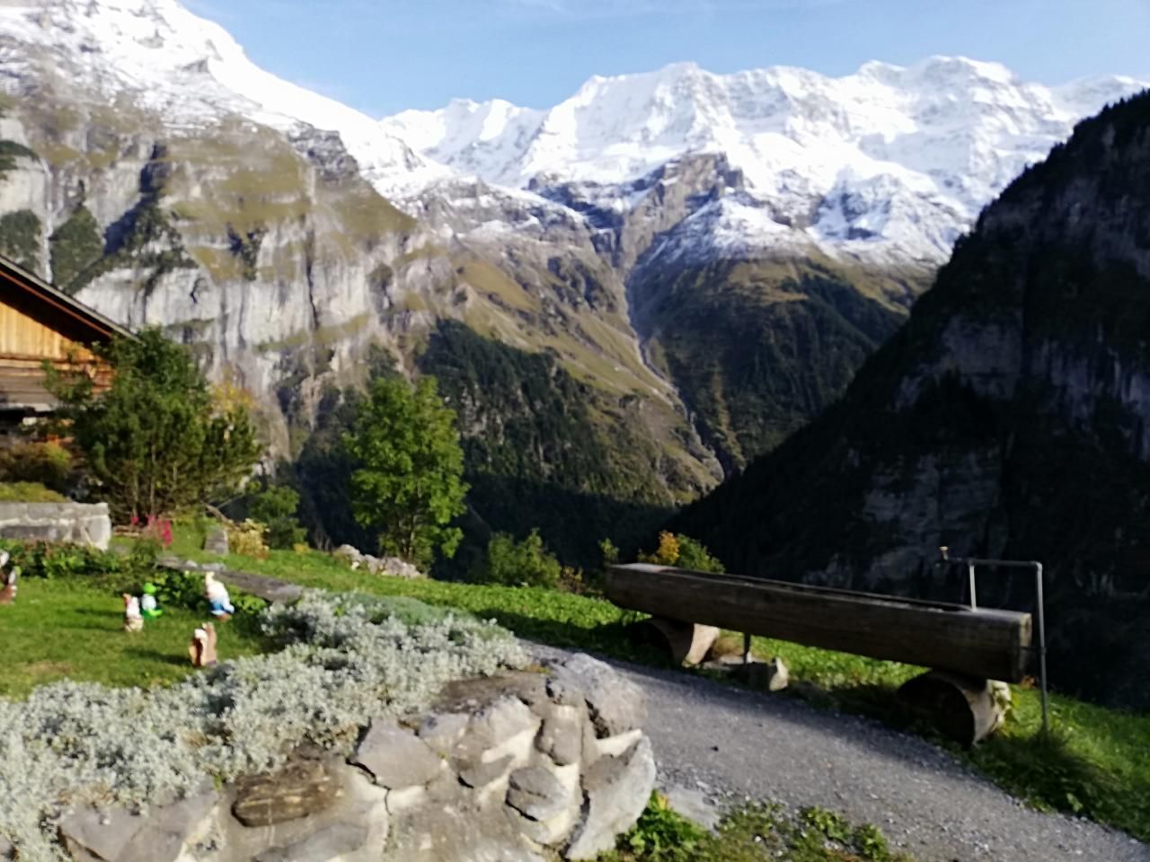 Aussenplatz mit Gartencheminée oder die geschützte Laube laden zum Verweilen ein. Der neuplatzierte Aussensitzplatz vor dem Haus mit grossem Tisch bietet einen wunderbaren Ausblick auf die Berge: Mönch, Jungfrau, Breithorn, Tschingelhorn, Spitzhorn, Grosshorn, Gespaltenhorn und Büttlassen und Sefinenfurke, welche die Verbindung ins Kiental herstellt.