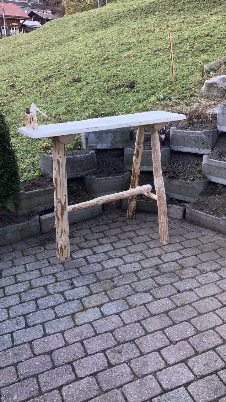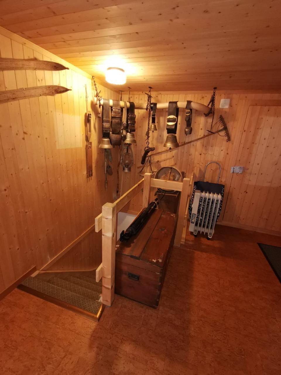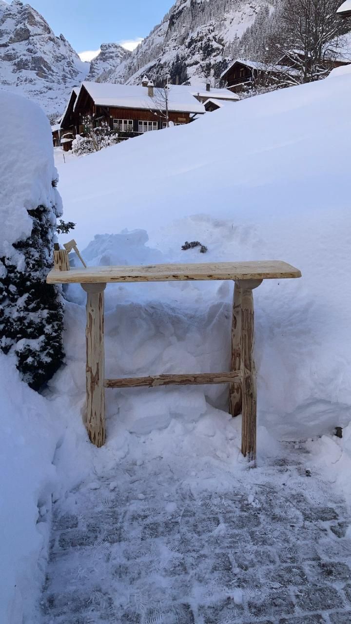 Ab Wintersaison '24 sorgt der Handlauf im Treppenaufstieg für mehr Sicherheit im Haus. Für kurzweilige Apéros oder Schlummerbecher lädt die original Gimmelwalder Gartenbar ein.