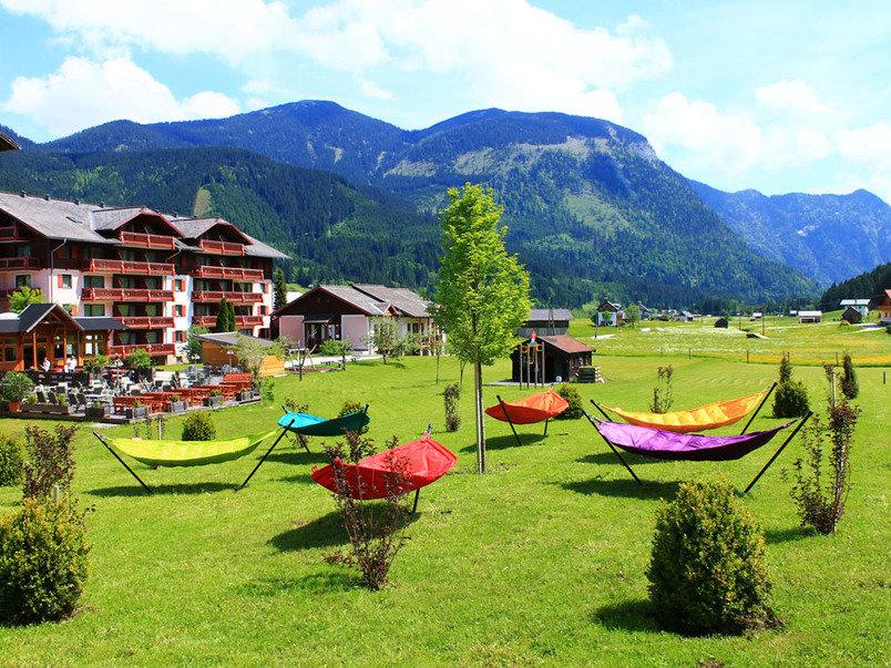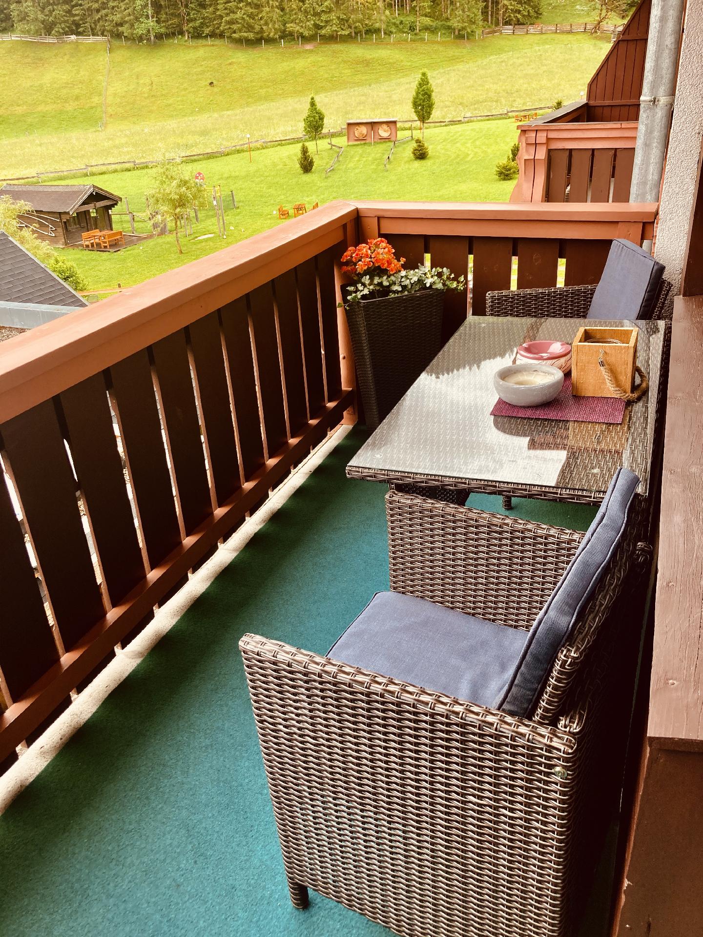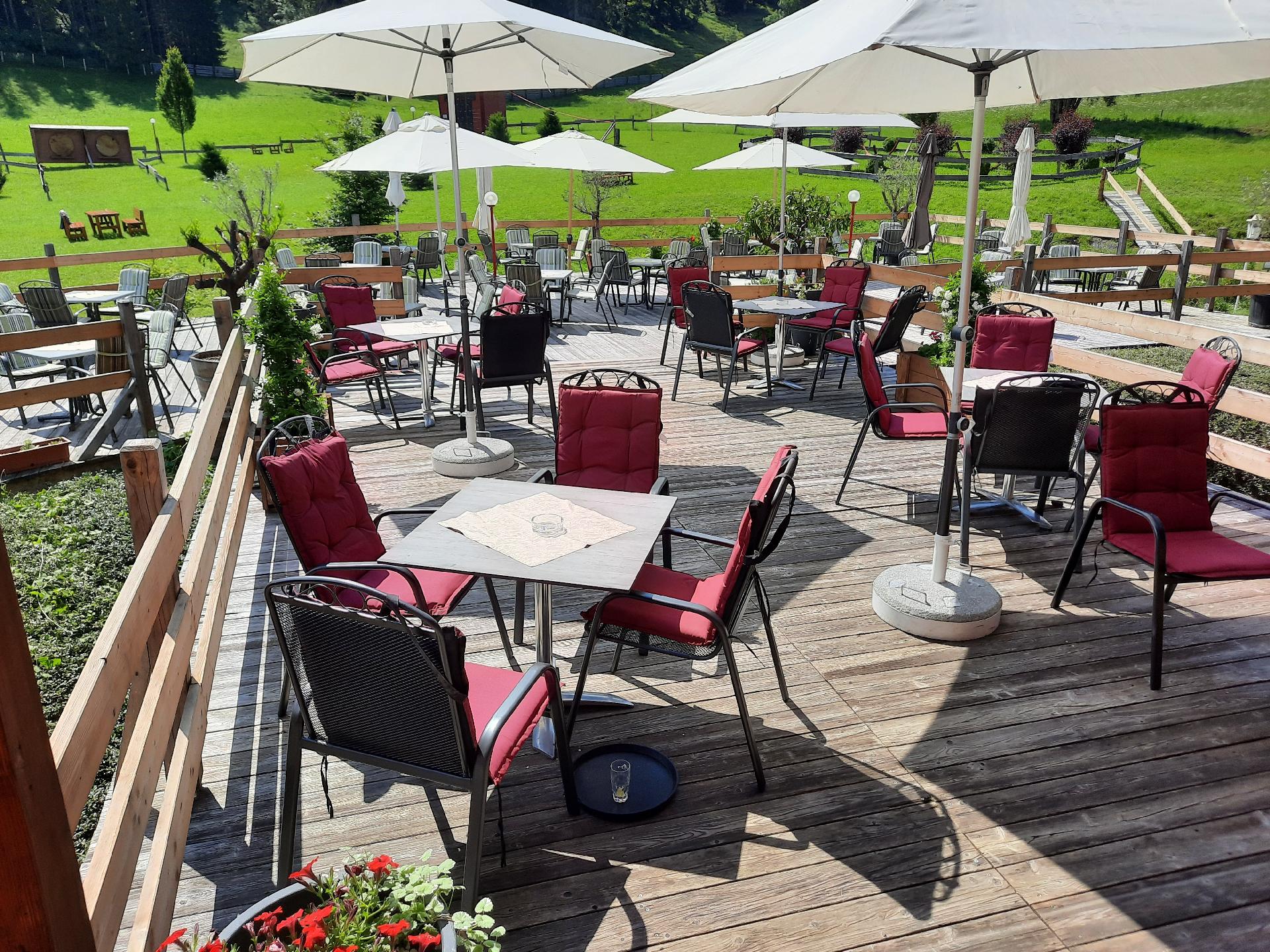 Großzügige Sonnenterrasse mitten im Grünen. Für die Kinder gibt es in den Sommermonaten einen Strechelzoo im Garten und einen großen Kinderspielplatz. Im Winter können Sie direkt vorm Haus in die Langlaufloipe einsteigen. Auch der Schibus bringt sie direkt von Apartment in 3 Minuten ins Schigebiet Dachstein West.