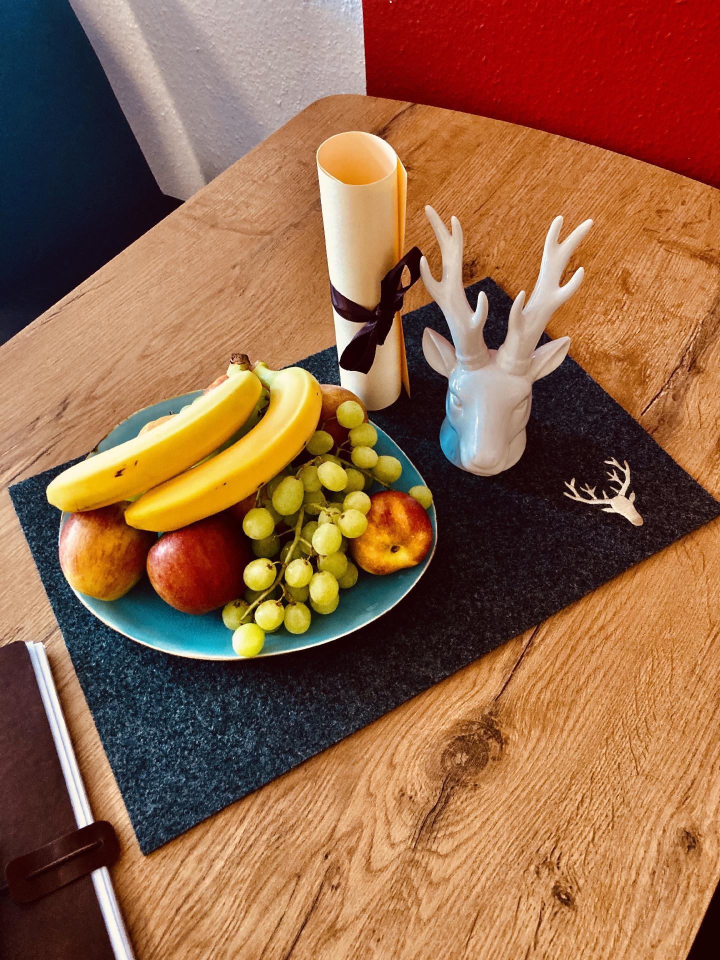 Es wird vom Vermieter eine Erstausstattung von Kaffee, Tee, Pflegeprodukte so wie ein erfrischendes Früchteteller bei Anreise zur Verfügung wird vom Vermieter eine Erstausstattung von Kaffee, Tee, Pflegeprodukte so wie ein erfrischendes Früchteteller bei Anreise zur Verfügung gestellt.