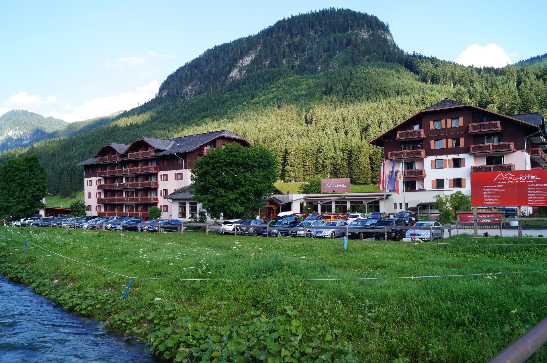 Das renovierte Apartment 37 qm `` Hallstatt-Dachstein-Inn´´ mit einem Wellnessberich befindet sich im 2. Stock des Vitalhotels Gosau. Es befindet sich 3 Gehminuten vom Zentrum Gosau entfernt. Zum Skivergnügen in das Skigebiet Dachstein-West sind es mit dem Ski Bus, der direkt vor Ihrem Apartment startet, ca. 1 km. Das Skigebiet Dachstein-West besitzt in Gosau, drei Liftstationen die Sie auf den Berg bringen. Im Skigebiet Dachstein-West haben Sie die Möglichkeit zwischen ``Gosau, Rußbach, Zwieselalm und Annaberg´´ auf 160 Pistenkilometer Ski zu fahren. Weiters können Sie direkt hinter dem Vitalhotel in das Langlaufparadies einsteigen. Der Gosausee und Dachsteingletscher befinden sich 5 Autominuten vom Apartment entfernt. Die Welterbe Region Hallstatt und die Salzminen, erreichen Sie in 10 km. Genießen Sie im Sommer die traumhaften Wanderwege des Salzkammerguts die direkt vor der Haustüre liegen. Genießen Sie auch ein Reichhaltiges Frühstücks so wie Abend Buffet, dass Sie direkt vor Ort an der Rezeption gegen Aufpreis buchen können. Das Hallstatt Dachstein Inn Apartment hat eine Kapazität von max. 4 Personen, die auf einen King-size Boxspringbett und einem hochwertigem Schlafsofa für 2 Personen nächtigen können. Dieses Apartment verfügt über kostenfreies Wifi, Balkon mit Bergblick, Flachbild Kabel TV mit Internet (Netflix), voll ausgestattete Küchenzeile, Kaffeemaschine, Wasserkocher, eigenes Badezimmer mit Dusche, Safe, Allergiker geeignet. Saisonal bietet Ihnen das Dachstein-Hallstatt-Inn auch einen großzügigen Wellnessbereich mit Indoor-Pool, Infrarotkabinen, Sauna, Ruheraum, Fitness, Kidsclub (teilweise Betreuung) und Massagen (gegen Aufpreis und Reservierung) Gerne können Sie einen gemütlichen Kaffee am Nachmittag oder einen fruchtigen Cocktail in unserer Hotelbar bestellen. In den Sommermonaten entspannen Sie mitten im Grünen auf unserer großzügigen, ruhigen Sonnenterrasse. Den Flughafen Salzburg W. Amadeus Mozart erreichen sie in 47 Kilometer Entfernung vom Apartment Hallstatt-Dachstein-Inn. Auch Hallstatt und Bad Ischl ist nicht weit von Gosau entfernt. Genießen Sie Ihren Urlaub doch mal in den Bergen des Salzkammerguts.