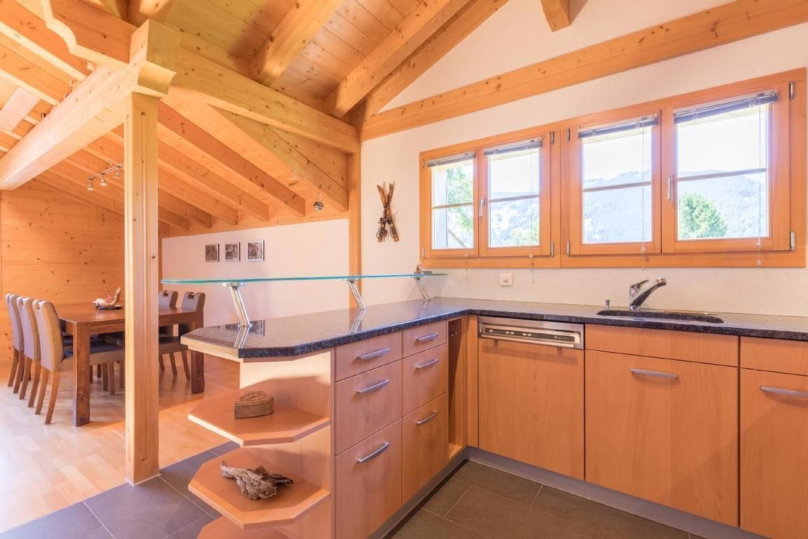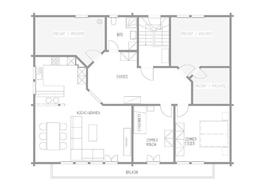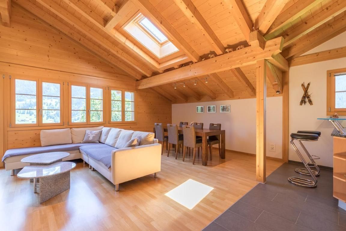 Das gepflegte Zweifamilienchalet liegt an ruhiger, leicht erhöhter Lage etwas ausserhalb des Zentrums von Grindelwald. Über eine Treppe gelangen Sie ins Obergeschoss, wo sich die grosszügige Dachwohnung befindet.
