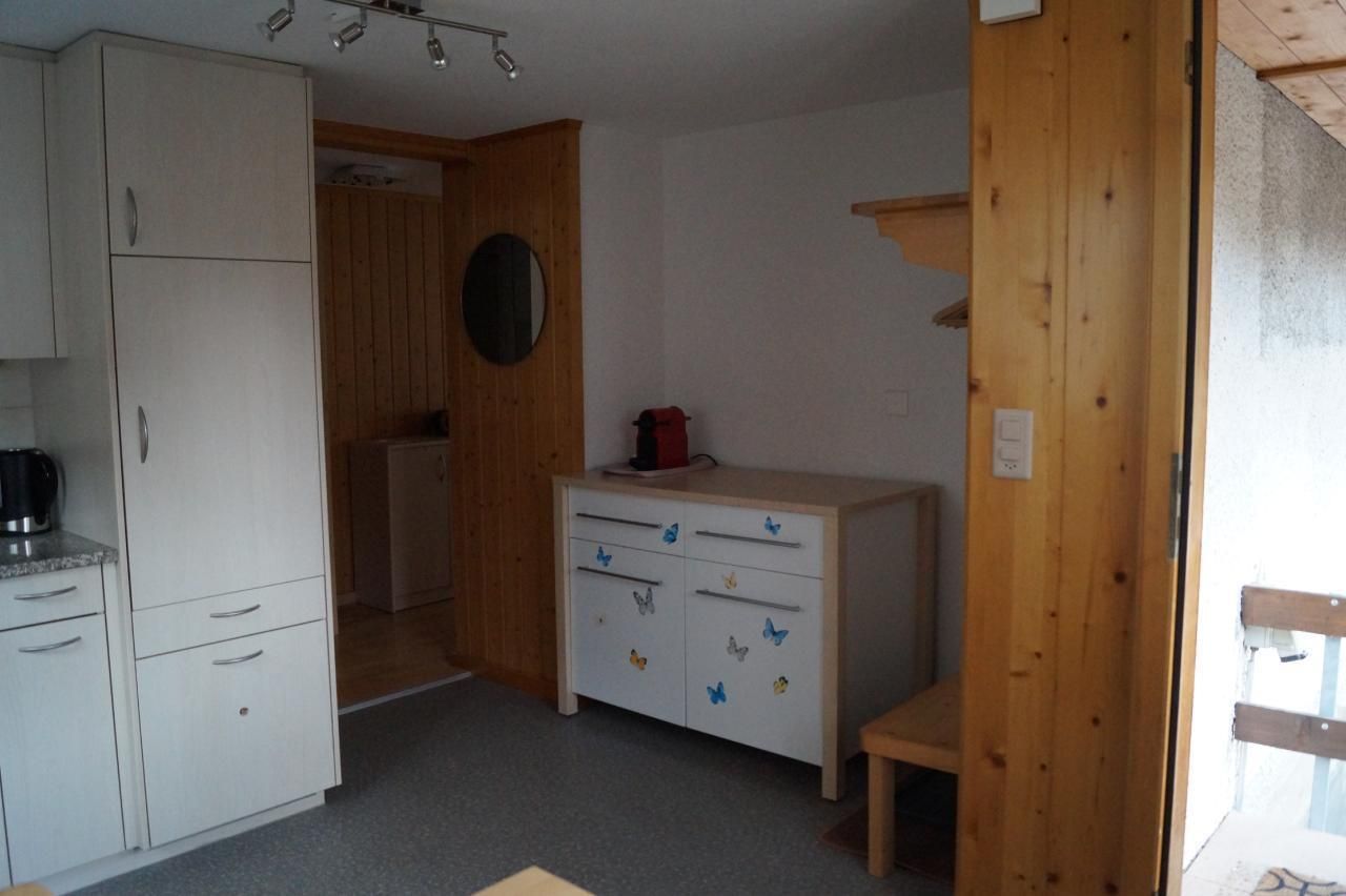 In der lichtdurchfluteten Küche unserer Nichtraucherwohnung können Sie Ihre Mahlzeiten in einer angenehmen Atmosphäre zubereiten und genießen. Sie ist voll ausgestattet mit einem 4-Platten-E-Herd, Backofen, Gefrierfach, Kühlschrank sowie weiteren Annehmlichkeiten wie einem Mixer, einer Nespresso-Maschine (Kapseln gegen Gebühr), Toaster und Wasserkocher. Küchenwäsche ist beim ersten Set inklusive, und Unterhaltung bieten ein Radio mit CD-/USB-Player. Im gemütlichen Schlafzimmer sind die Betten bereits liebevoll für Ihre Ankunft bezogen und ein geräumiger Kleiderschrank mit Kleiderbügeln steht auch zur Verfügung. Wir bitten um Verständnis, dass Haustiere nicht gestattet sind.