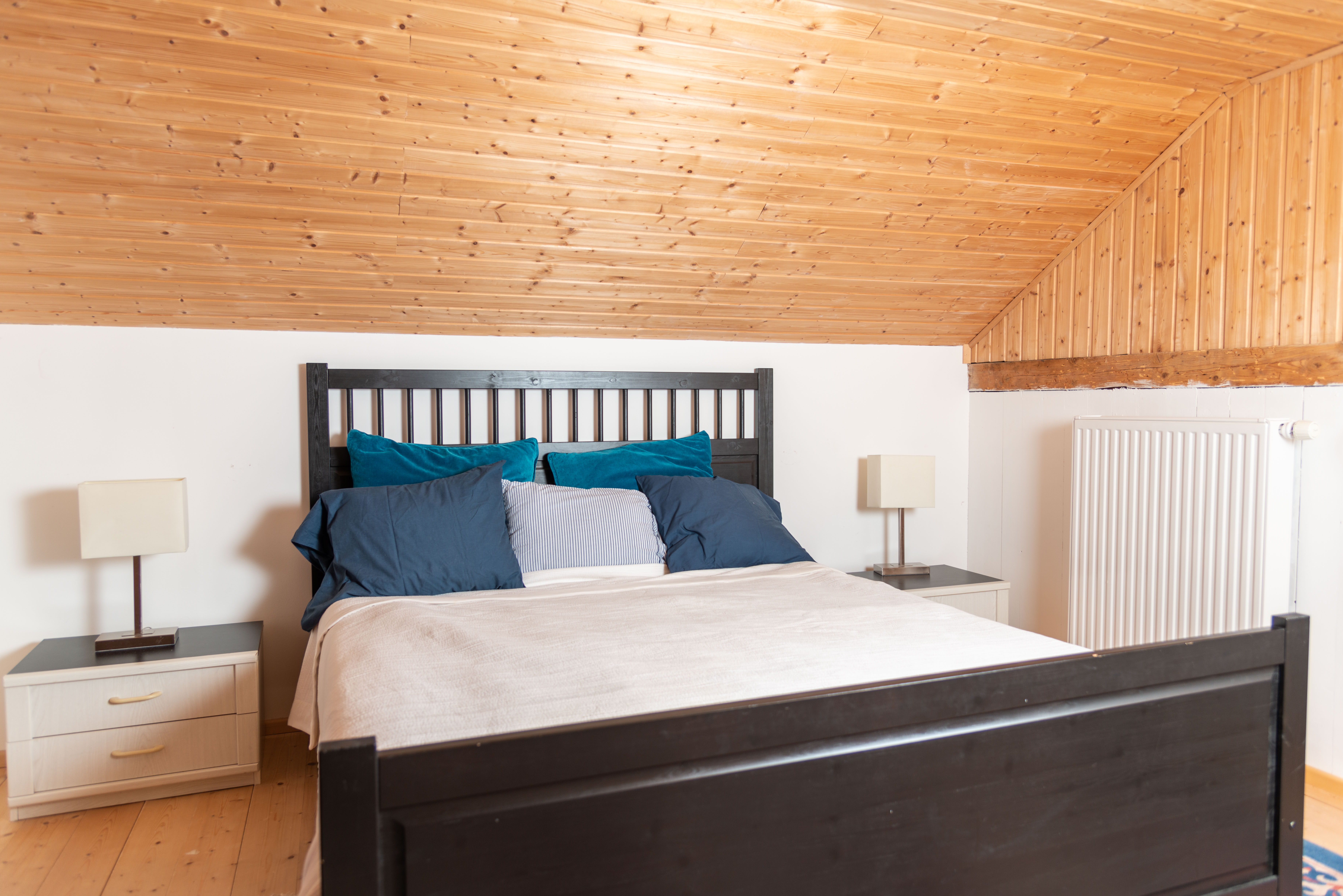 3 Zimmerchalet (fast 80m2) auf 2 Stockwerke, 4 Personen Maximum, das beinhaltet: 1 Schlafzimmer mit 1 Doppelbett und 1 Schlafzimmer mit 2 Einzelbette. Ein Wohnzimmer mit TV-DVD, Wifi gratis und Gesellschaftspiele. Offene ganz ausgerichtete Küche: Spülmaschine, Kühlschrank, Backofen, Mikrowelle und fondue-set. Badezimmer mit Dusche/WC und Waschbecken.