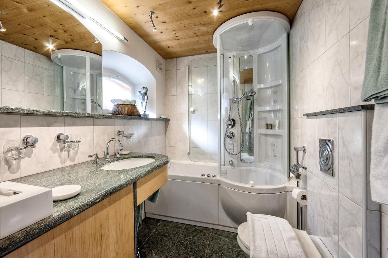 Im Erdgeschoss ist ein Schlafzimmer mit direkt angrenzender Nasszelle (Bad / Dusche, Haartrockner, Waschmaschine / Tumbler, Handtuchwärmer).