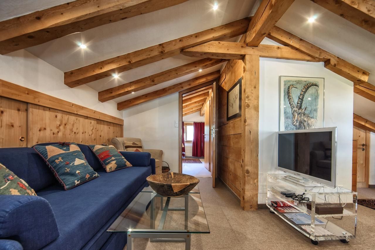 Im 2. Obergeschoss ist noch ein kleines Wohnzimmer mit Sofa und Fernseher.