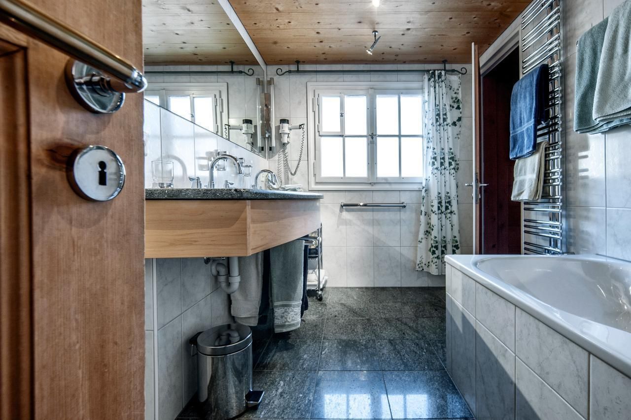 Das Chalet liegt zentral, unmittelbar unterhalb der Bushaltestelle «Bellevue».