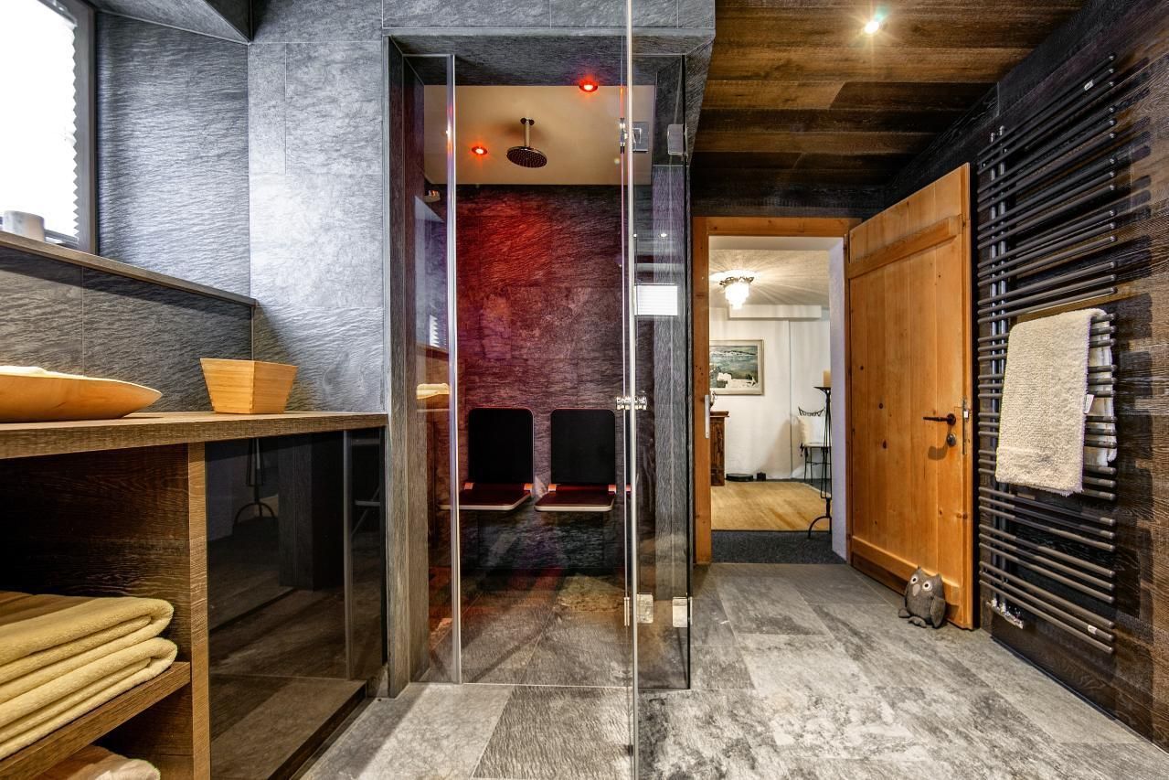Im Untergeschoss gibt es eine moderne Dampfsauna und einen Entspannungsraum; mit Ausgang in den Garten mit BBQ Platz.