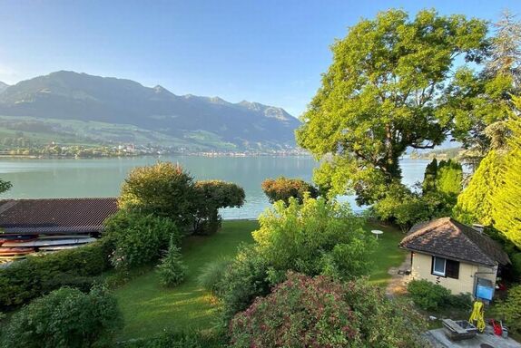Gemütliches Ferienhäuschen, direkt am Sarnersee inmitten eines wunderschönen Gartens. Ruhige, unverbaute Lage mit Sicht auf den See und die umliegenden Obwaldner Berge.
