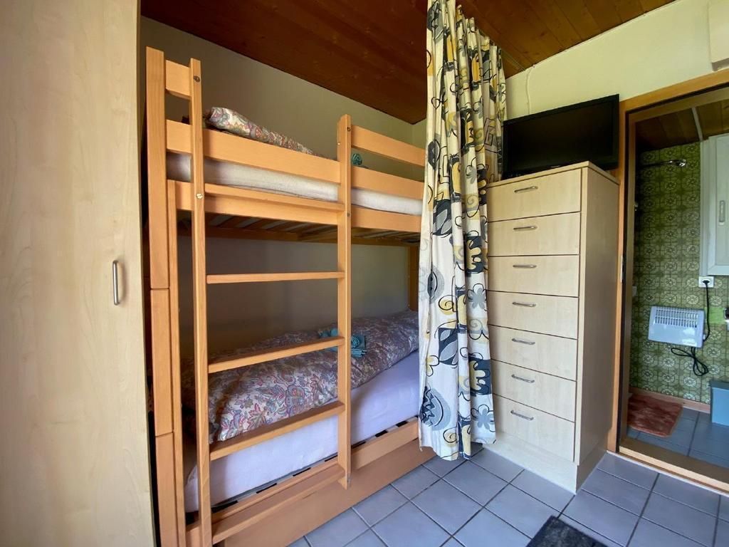 1 Zimmer -Studio mit allem drin was es für die Ferien braucht. Kajüttenbett für 2 Personen. Kochnische, Dusche, WC, etc.