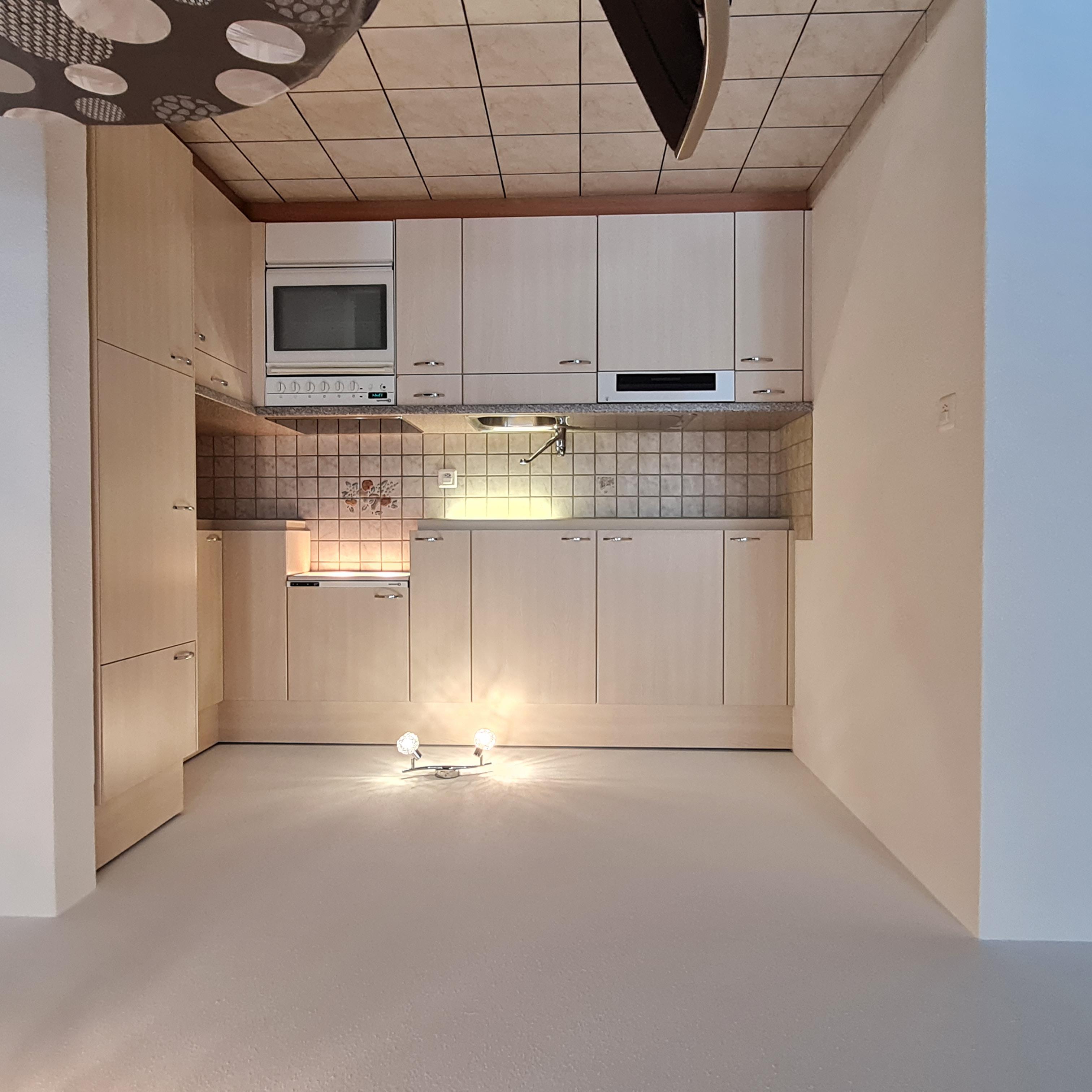 Wohnraum, Küche und Essecke. 2 Schlafzimmer, Dusche/WC.