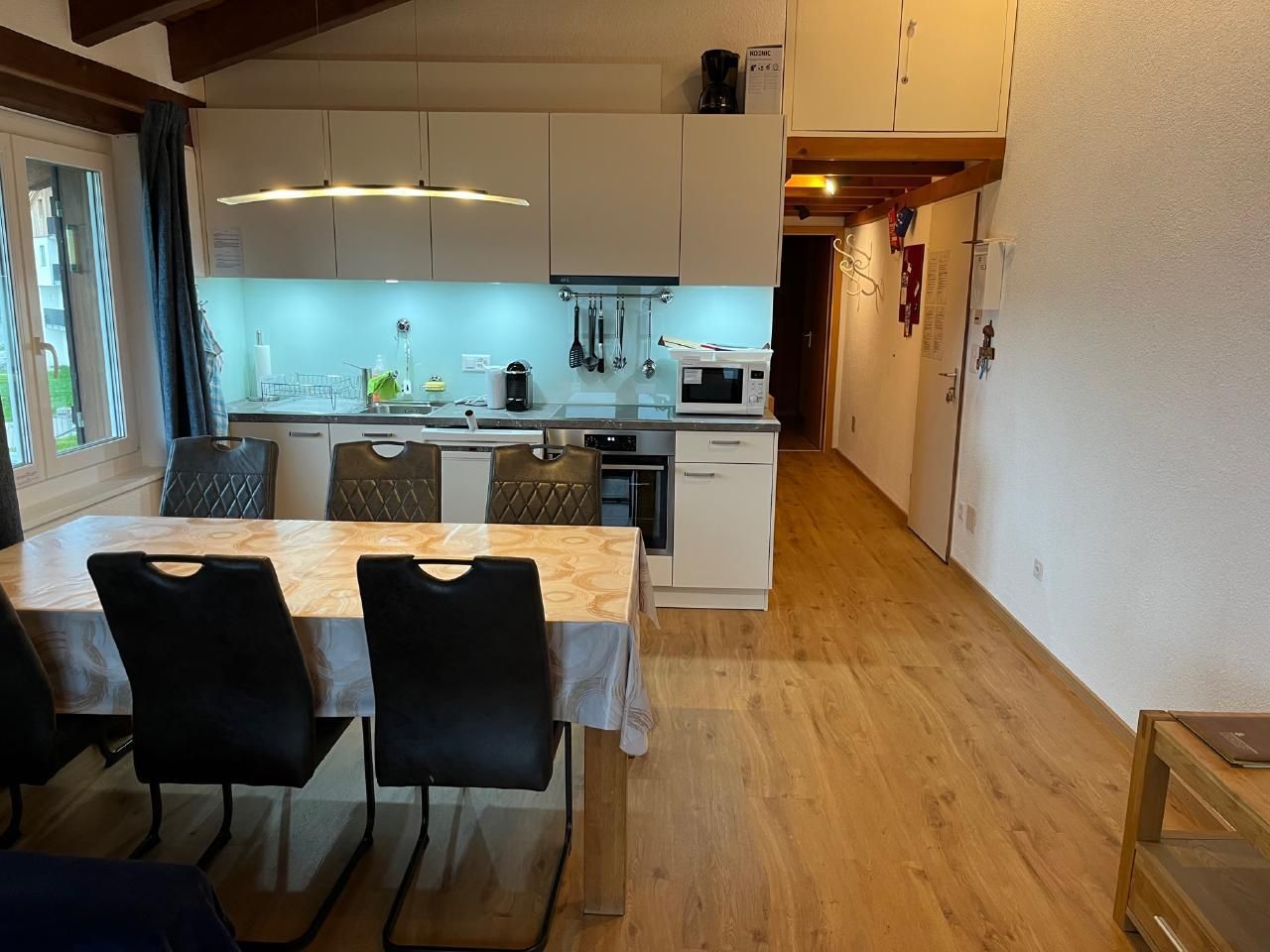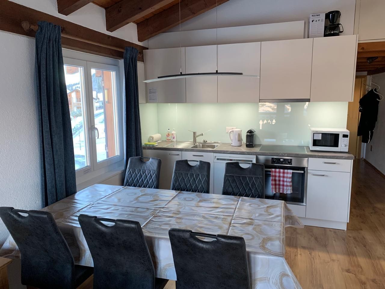 1 Dusche/Bad/WC, Küche, Backofen, Geschirrspüler, Mikrowelle, 2 Kaffemaschinen (Filterkaffe oder Nespresso), Fondue- und Raclette Set, Wasserkocher, Cheminee, Kostenloses WIFI, TV-, Radio, DVD Player (sowie diversen DVD's), und diverse Gesellschaftsspiele für regnerische Tage zur Verfügung. Das Appartement besitzt Fussbodenheizung.