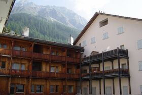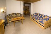 2 1/2-Zimmerwohnung im Parterre mit Balkon. Wohnzimmer mit ausziehbarem Sofa für 2 Personen, Essecke, 1 Doppelschlafzimmer, separate Küche und Bad/WC. Hallenbad und Sauna inkl.