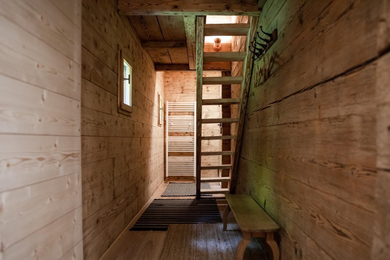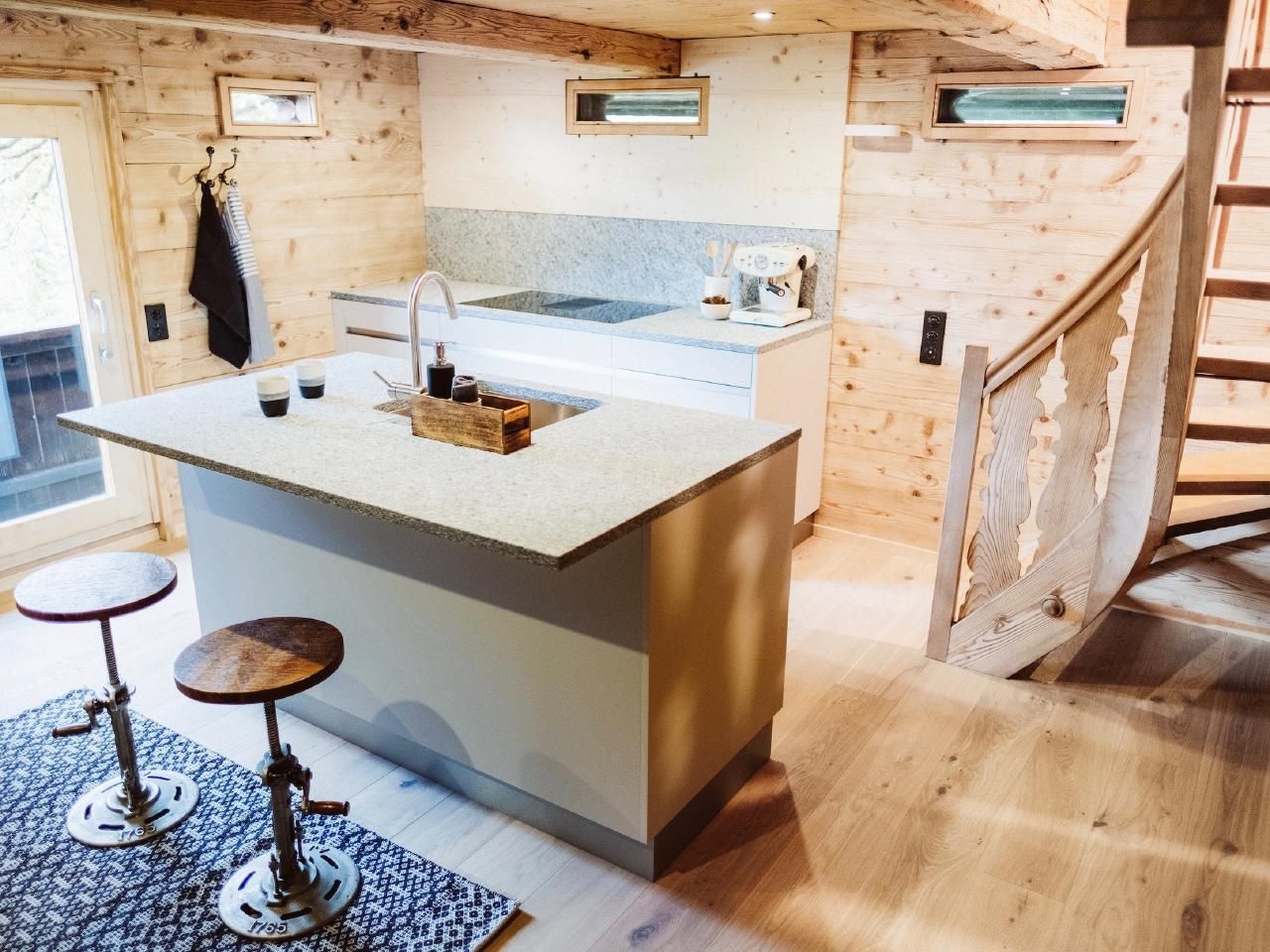 Des Weiteren führt eine schmale und leicht steile Treppe zu einer Schlafgalerie und einem Badezimmer. Von der Galerie aus genießen Sie einen reizvollen Blick auf den offenen Wohnbereich.