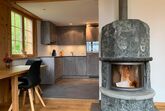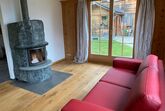Erdgeschoss: Terrasse zur Mitbenützung, grosses Wohnzimmer mit Schwedenofen und Essecke, ausziehbares Sofa. Neu eingebaute Küche mit Geschirrspülmaschine, Steamer und Kaffeemaschine.
