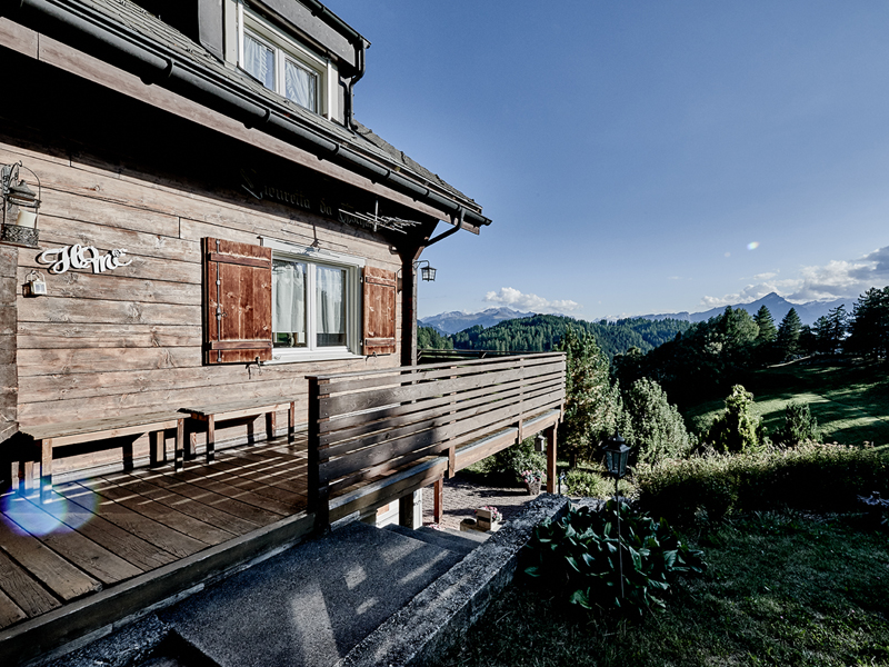 Familienfreundliches, freistehendes Holz-Chalet mit grossem Garten. Ruhige und sonnige Lage mit herrlicher Panoramaaussicht in die Bergwelt nach Flims/Laax, zum Piz Beverin und Heinzenberg. Das Haus liegt 5 Minuten oberhalb des Dorfkern Feldis. Terrasse, eigene Liegewiese und lauschiger Gartensitzplatz mit viel Umschwung. Ideal für Kinder und Leute, die Ruhe und Erholung suchen. Eigener Parkplatz mit bewilligter Zufahrt (Zufahrt nur bei schneefreien Verhältnissen möglich).