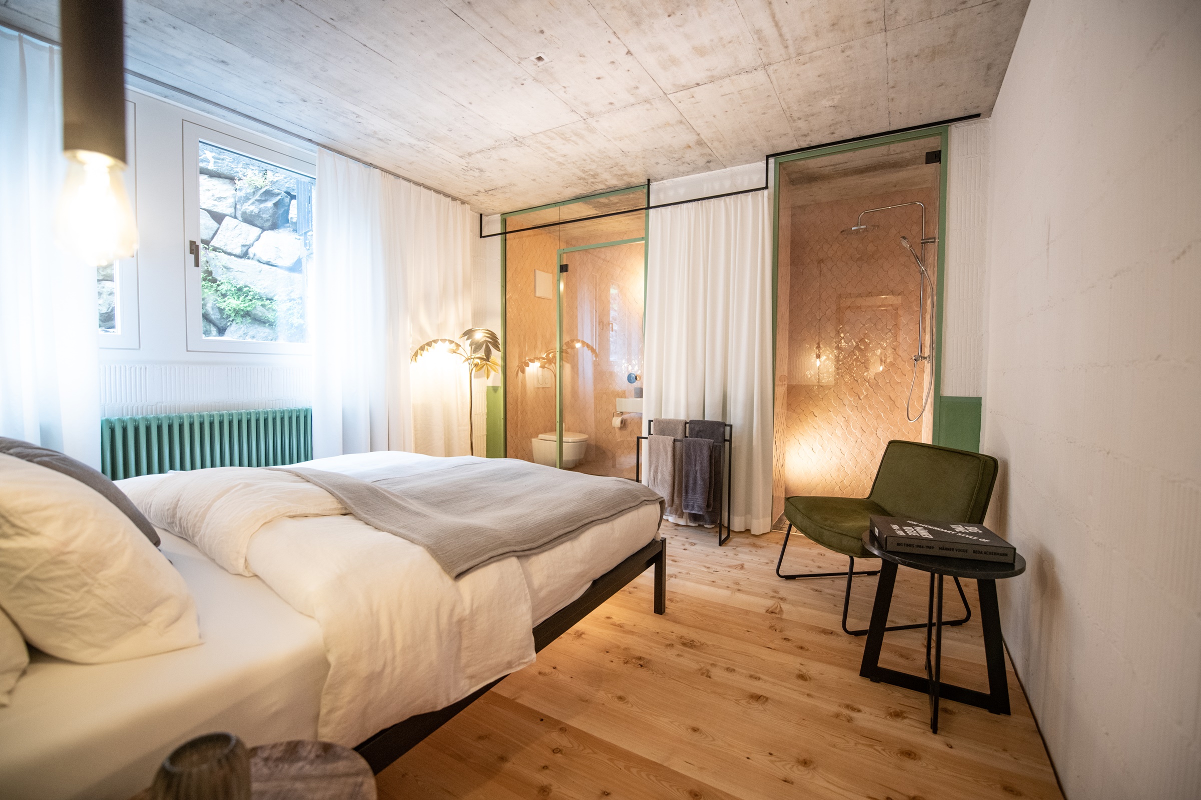 Insbesondere in den Räumen Egli und Felche verbindet die alte Natursteinmauer Nostalgie mit Moderne.