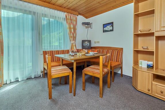 Ihr Appartement mit ca. 35 m² besteht aus: 1 Doppelzimmer, 1 Wohn-Schlafraum mit ausziehbarer Couch für 2 weitere Personen, Flat-TV und Küchenecke, 1 Bad mit Badewanne, zwei Waschbecken und WC, sowie Südbalkon.
