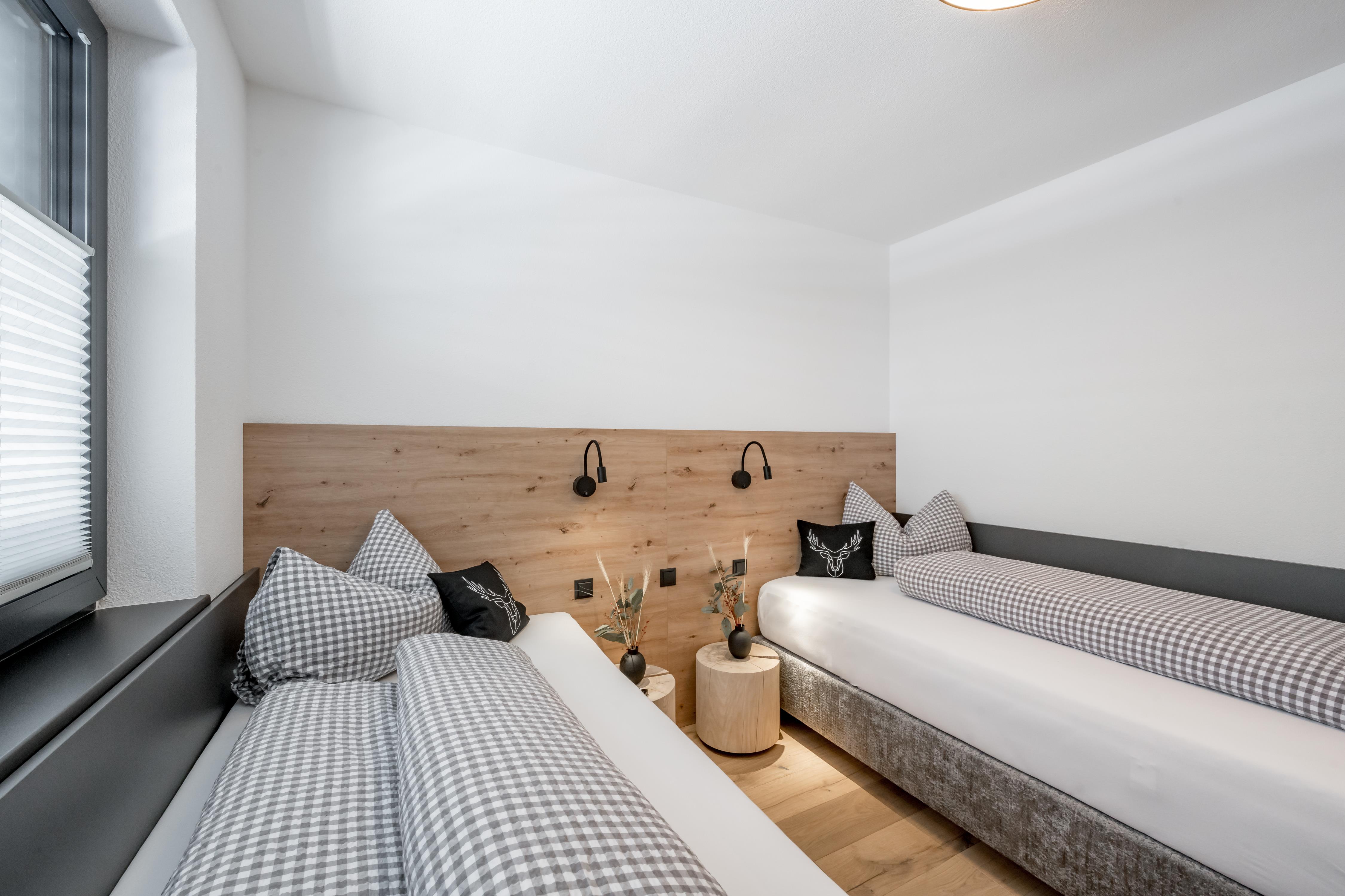 Das Apartment Gaiskogel mit ca. 79 m² und Terrasse befindet sich in der 2. Etage und besteht aus: 1 offenen Wohnraum mit gemütlicher Couch, Esstisch, Smart TV und voll ausgestatteter Küchenzeile mit: Kompaktofen mit Mikrowelle, Kühlschrank mit Tiefkühlfach, Geschirrspüler, Pad-Kaffeemaschine uvm.; 1 Doppelzimmer mit Smart TV; 2 Zweibettzimmer mit Smart TV; 1 Badezimmer mit Dusche und WC; 2 separate WC´s; Wellnesstasche mit Saunatüchern; möblierter Terrasse mit ca. 12 m² (mit Zugang zum Garten)