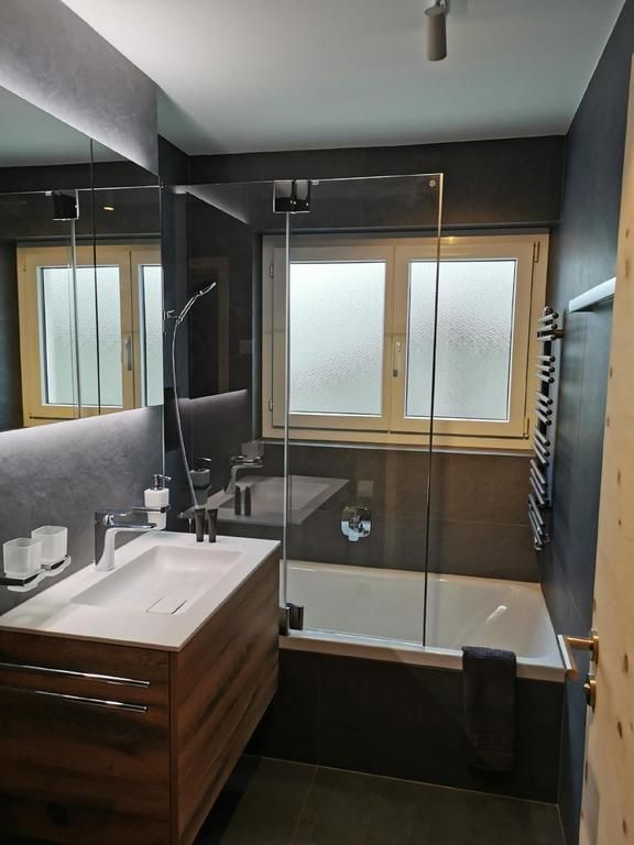 2021 komplett renovierte, modern eingerichtete 4 1/2 Parterre Wohnung, 100 m2, mit Gartensitzplatz und Grill. Ruhig gelegen mit Sicht auf die Engadiner Berglandschaft. Sonnige Lage, Zentral und trotzdem am Dorfrand von Pontresina. Die Wohnung bietet kostenlos W-LAN, TV. Ausgestattet mit edlen Plattenböden und Bodenheizung. Zwei hochwertig ausgestattete Badezimmer, Badewanne und separate Dusche. Schöne Küche mit Geschirrspüler, Backofen und grossem Kühlschrank. Waschmaschine und Tumbler, Ski- und Veloraum zur Mitbenutzung. Bikerfreundlich.