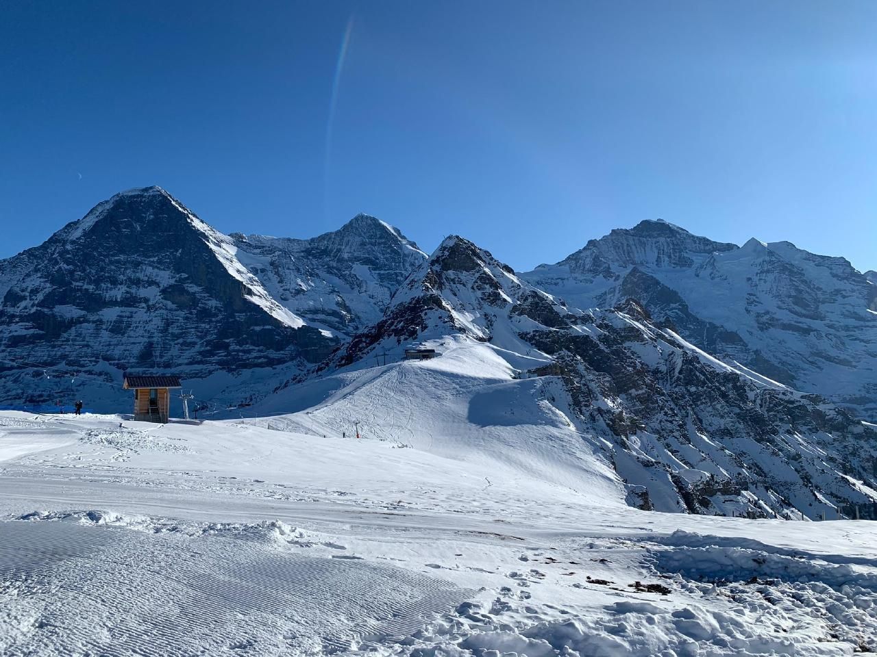 Die Jungfraubahn, die neue V-Bahn (Eiger Express und Männlichen, der Bahnhof Grund und Terminal, sowie das Freibad Hellbach sind in wenigen Gehminuten erreichbar (250 Meter entfernt). Die Busstation ins Dorf befindet sich in unmittelbarer Nähe.