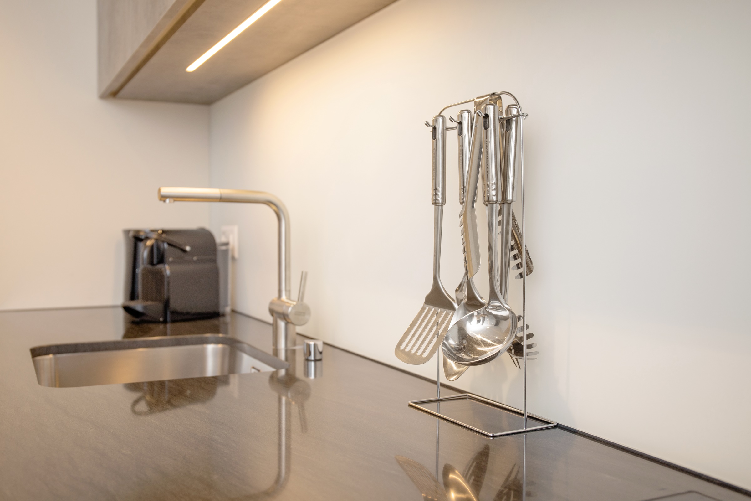 eine offene, moderne und voll ausgestattete Küche Inneneinrichtung & Technik