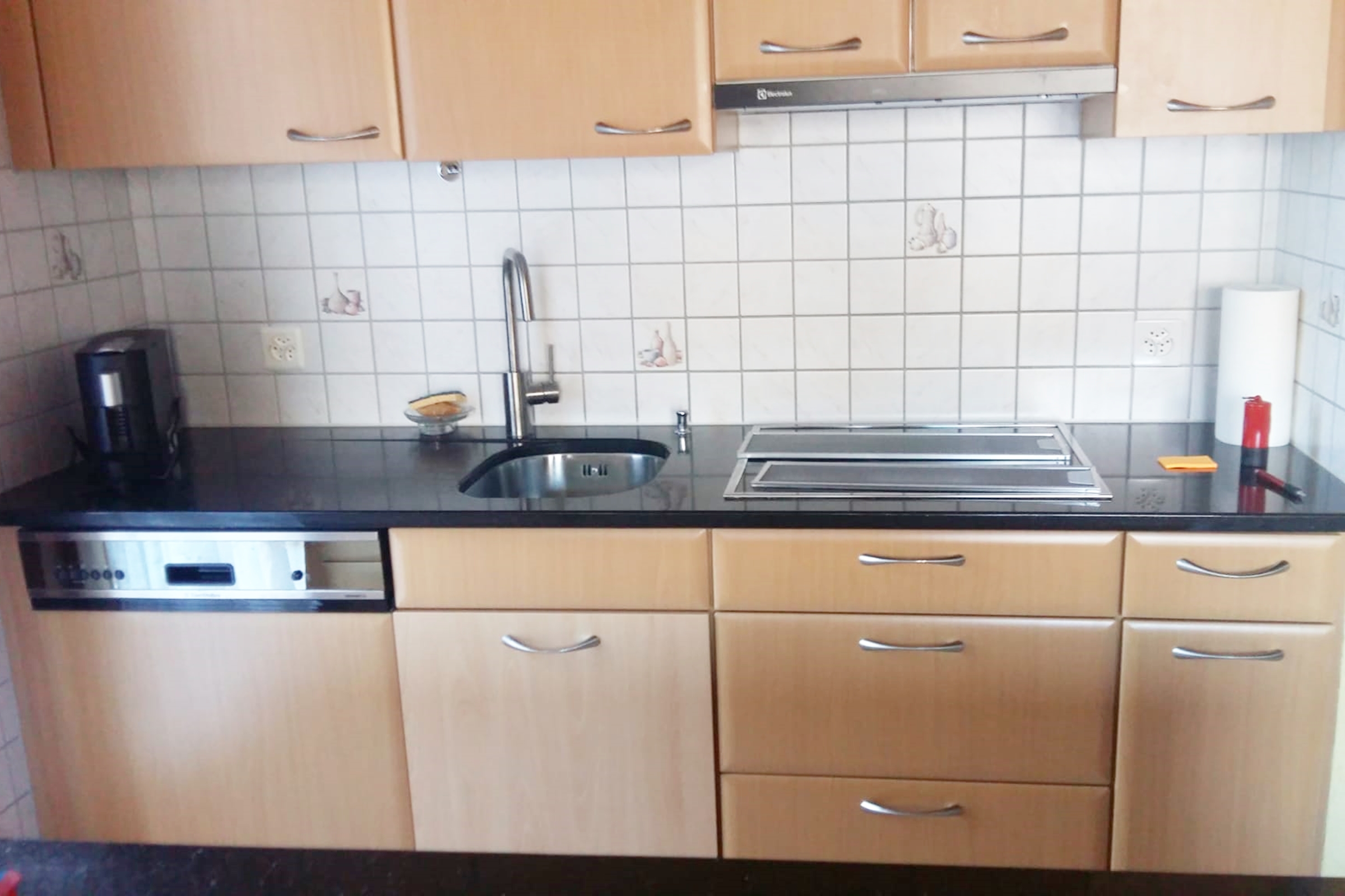 Die Küche ist komplett ausgestattet mit einem Backofen, Geschirrspülmaschine, Delizio Kaffeemaschine, Kühlschrank, Mikrowelle, Toaster und Wasserkocher. Inneneinrichtung