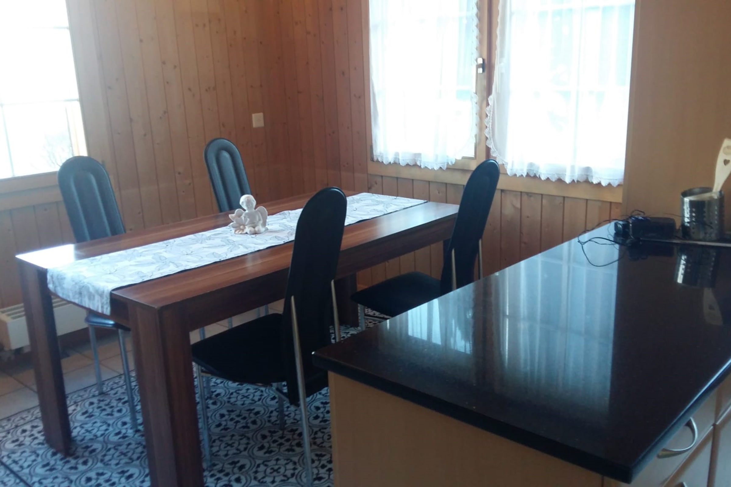 Die grosse Wohnung ist gemütlich und einfach eingerichtet. Ideal für 4 Personen. WLAN ist in der ganzen Wohnung kostenlos und ein TV ist im Wohnzimmer vorhanden. Eine Waschmaschine und Tumbler stehen im Keller zur Verfügung und sind auf Anfrage frei benutzbar.