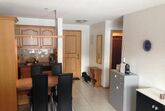 Die gemütliche 2,5 Zimmer-Wohnung mit Balkon verfügt über ein Schlafzimmmer mit Doppelbett und einer offenen Küche mit Esstisch.