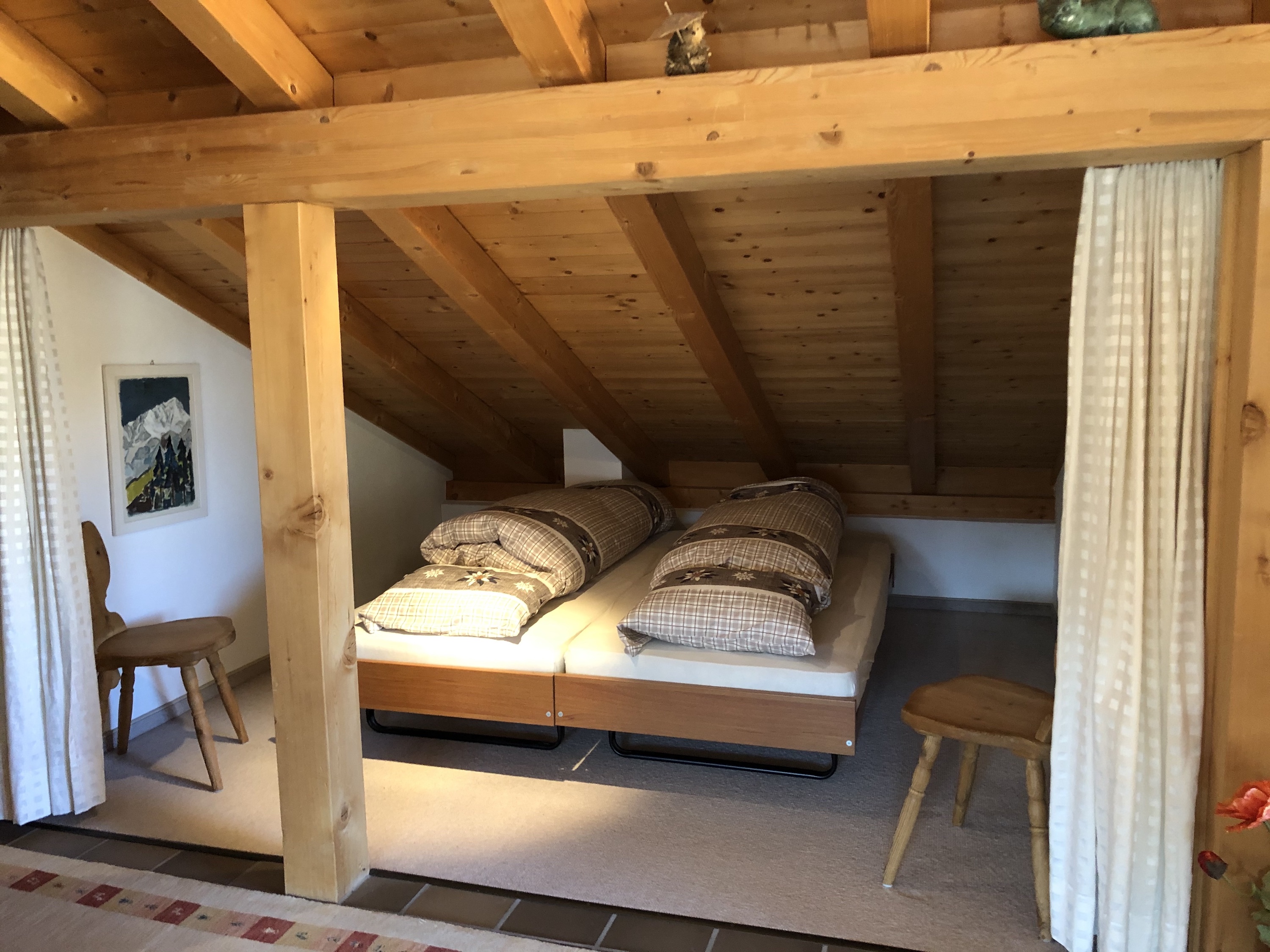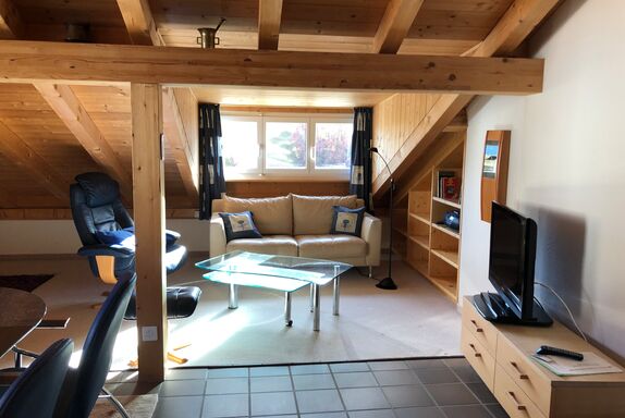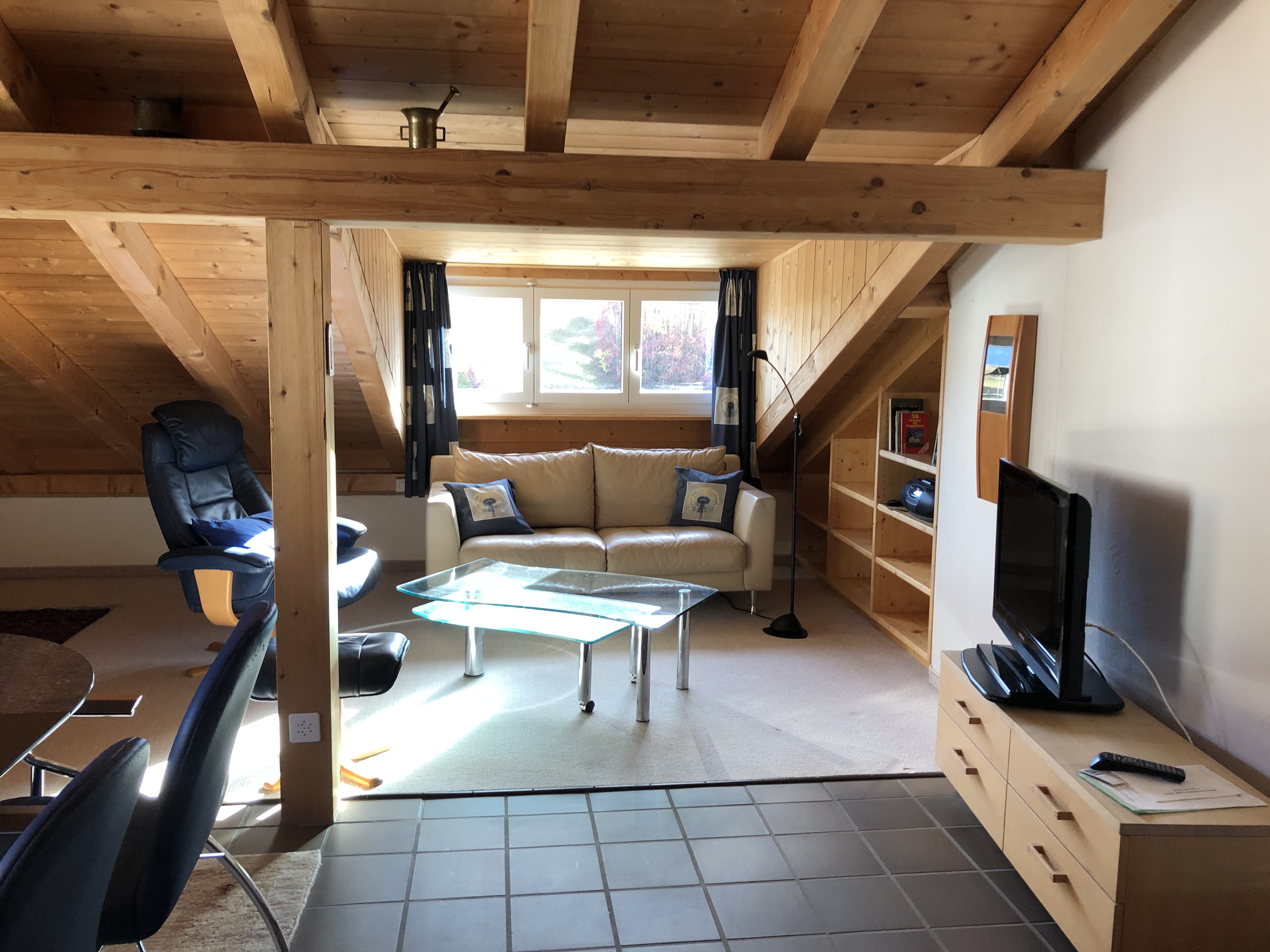 Die komfortable und gemütliche nichtraucher Dachwohnung mit Balkon liegt an ruhiger und sonniger Lage. Sie befindet sich im 2. Stock. Die Küche ist ganz vom Wohnbereich abgetrennt. Es stehen ihnen eine Schlafnische, die mit Vorhang abgetrennt ist und ein Schlafzimmer zur Verfügung. Das Bad ist mit Duschkabine und WC ausgerüstet.