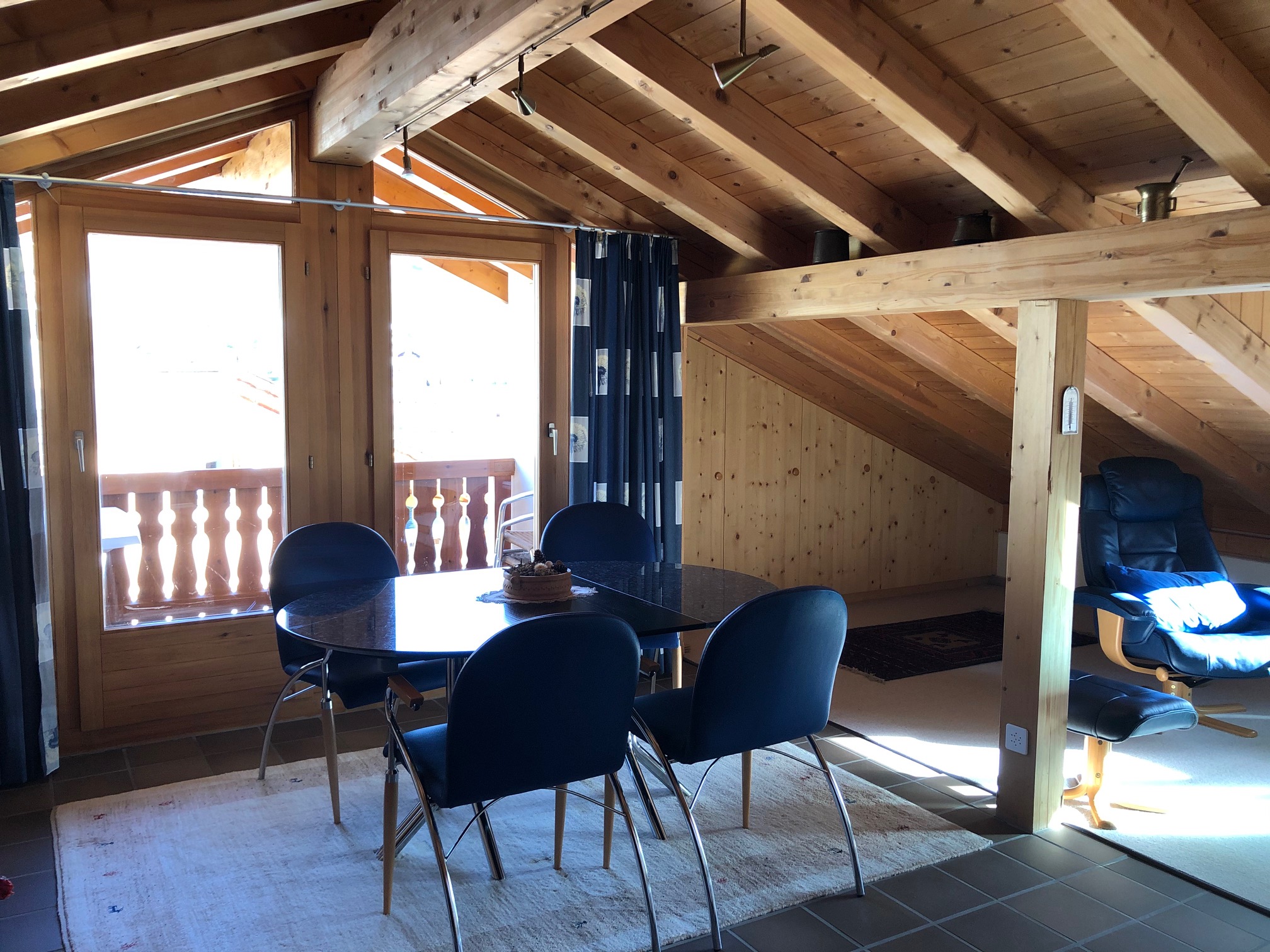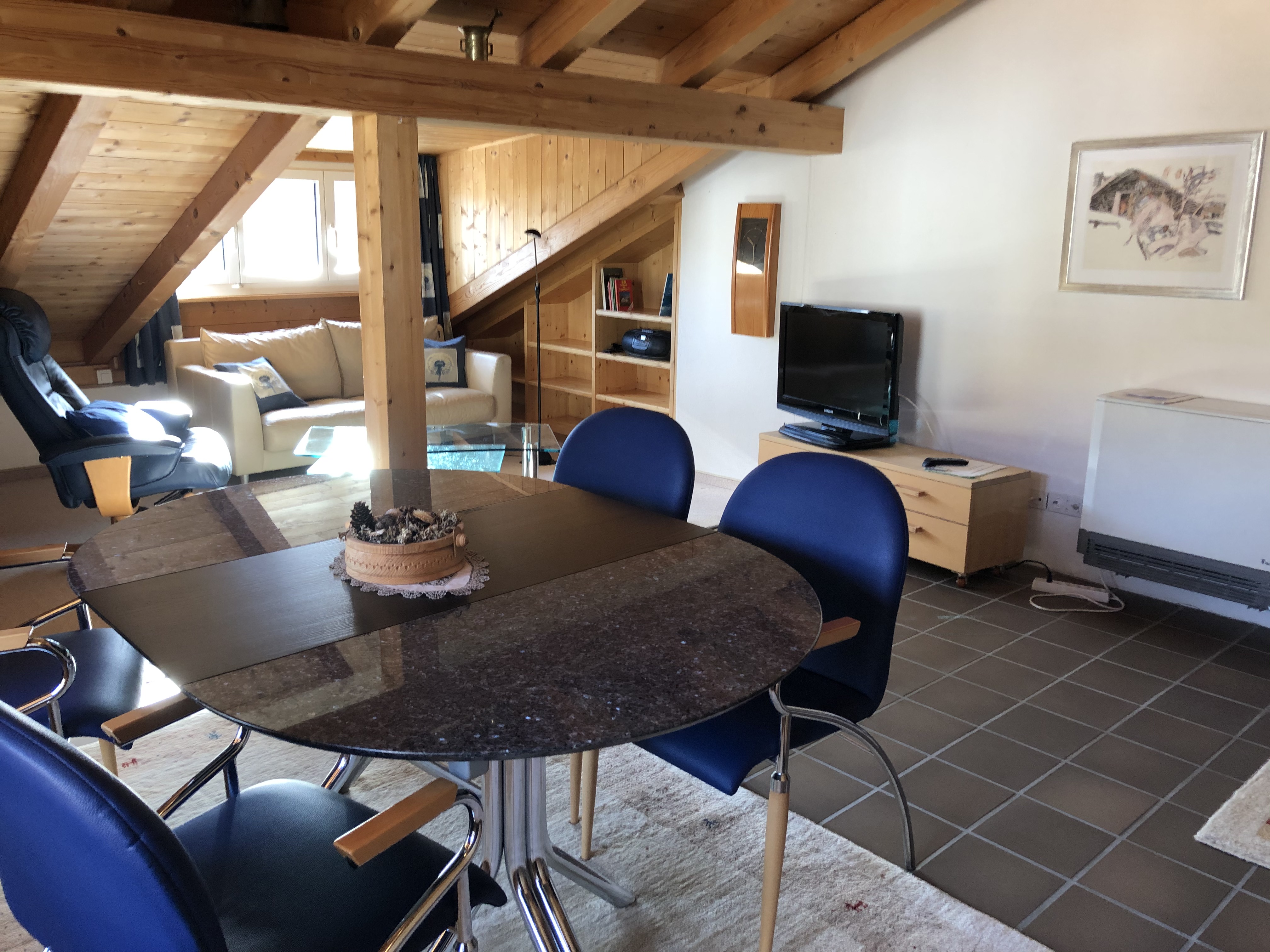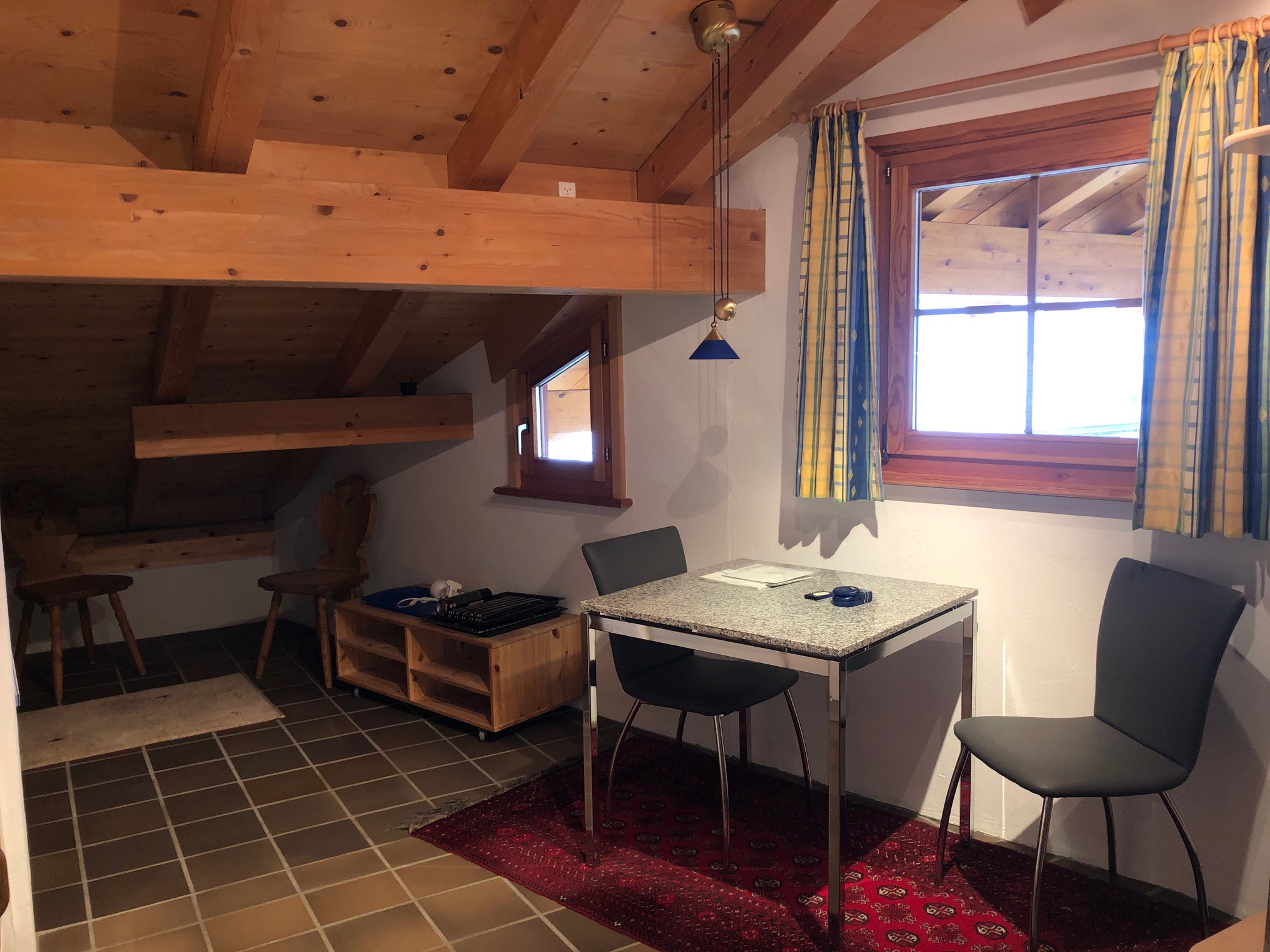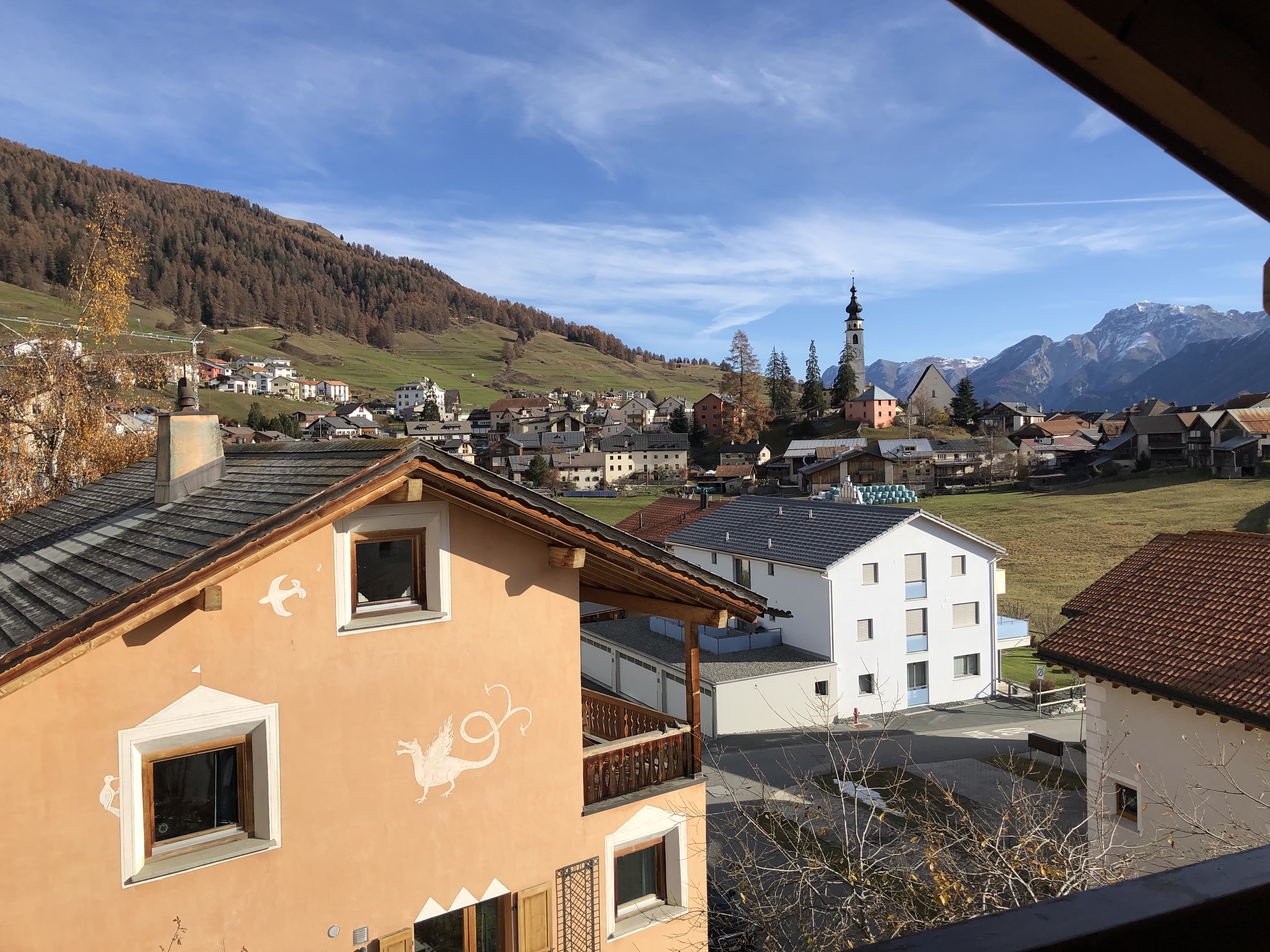 Das Studio ist sehr grosszügig ausgelegt und bietet viel Platz zum Sein. Vom Wohnessbereich sowie vom Balkon aus geniessen sie eine herrliche Aussicht auf Ftan und die Berge des Unterengadins.