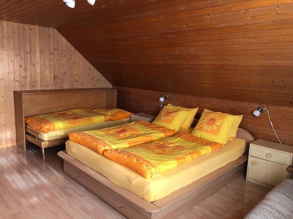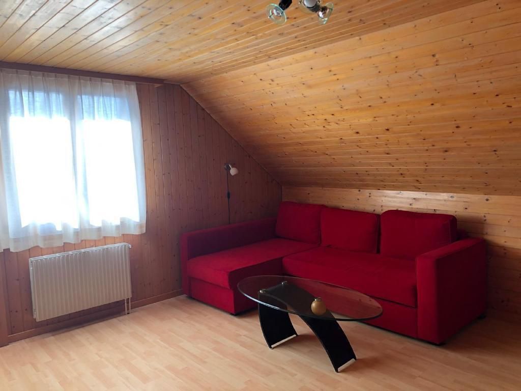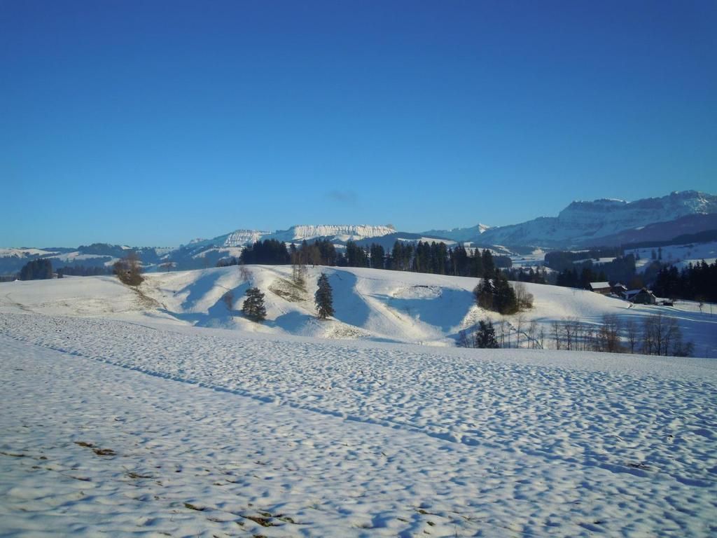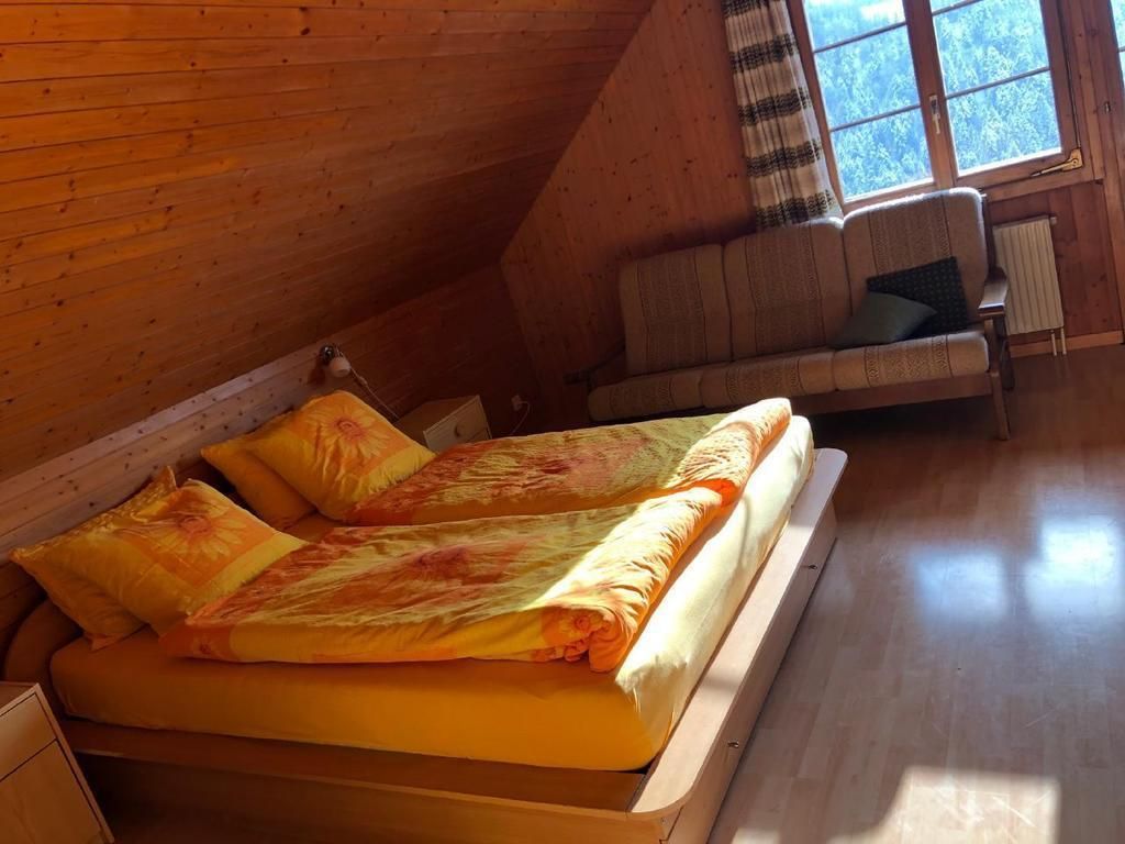 Unser Bauernhof liegt auf 920m Höhe an sonniger, meist nebelfreier Lage umgeben von Wiesen, Wald und Sicht auf die Berge. Wer Ruhe und Erholung braucht, ist hier am richtigen Ort. Die zu vermietende 3.5-Zimmerwohnung befindet sich im ersten Stock des Einfamilienhauses neben dem Bauernhaus und verfügt über einen separaten Eingang. Das grosse (25qm) Schlafzimmer verfügt über ein Doppelbett und ein Einzelbett. Ein Kinderbett stellen wir Ihnen auf Wunsch gerne zur Verfügung.Im geräumigen Wohnzimmer sind ein Bettsofa und ein Einzelbett ide Zimmer verfügen über einen direkten Zugang auf den Balkon, von wo aus sich eine wunderschöne Aussicht über Berg und Tal bietet.Im zweiten Schlafzimmer befinden sich zwei Einzelbetten.Die geräumige Küche verfügt über einen Esstisch.Das Bad, welches nur von Ihnen benützt wird, befindet sich auf der gleichen Etage.AusserdemIn den Zimmern herrscht Rauchverbot. Haustiere sind erlaubt.Ein gedeckter Sitzplatz vor dem Haus lädt zum Verweilen n Kinder stehen Trettraktoren und ein Sandkasten zur Verfügung. Auf Anfrage können Sie morgens beim Füttern der Hirsche dabei sein.