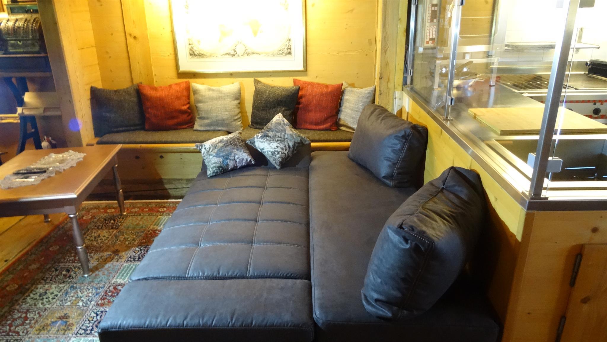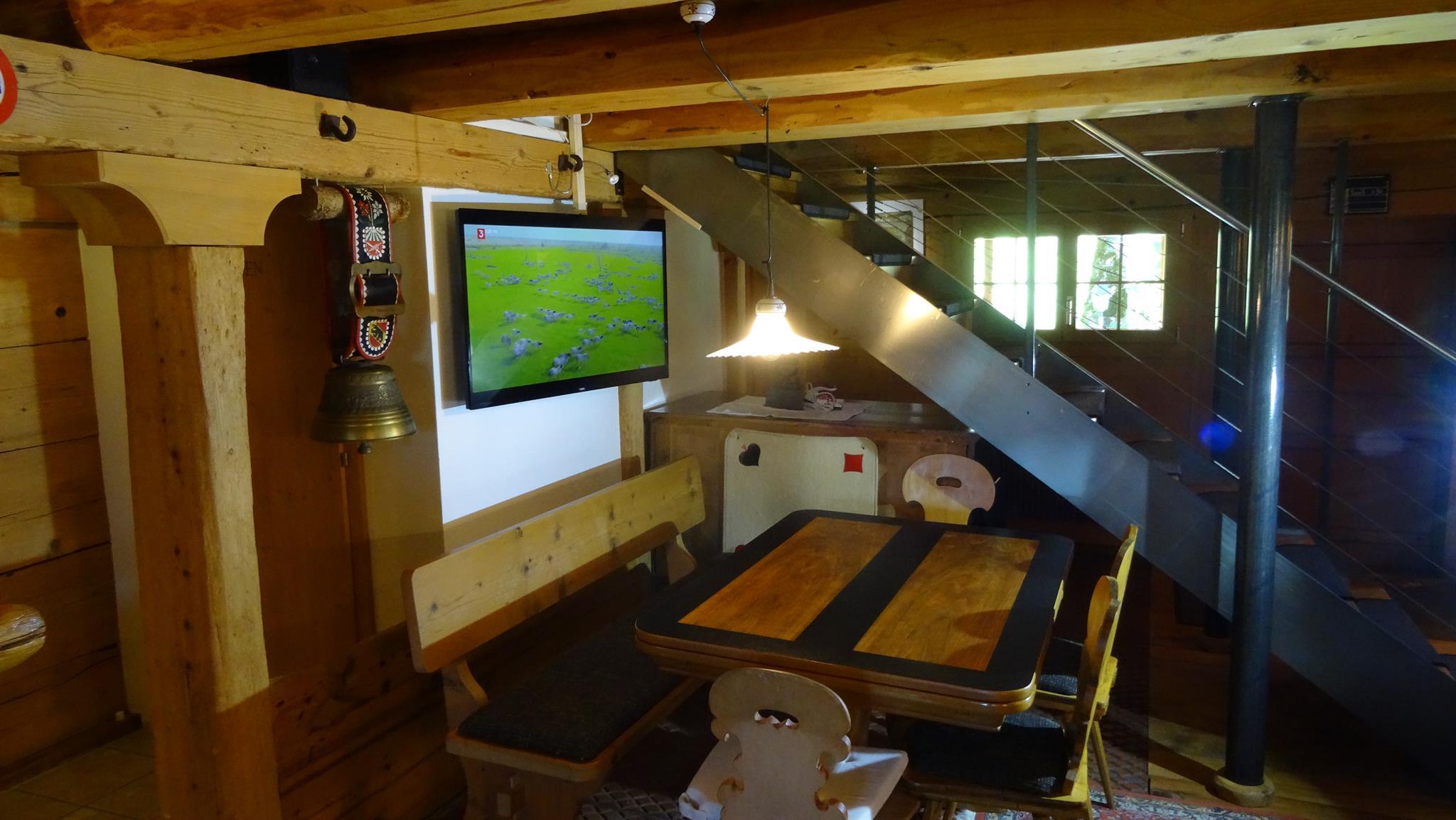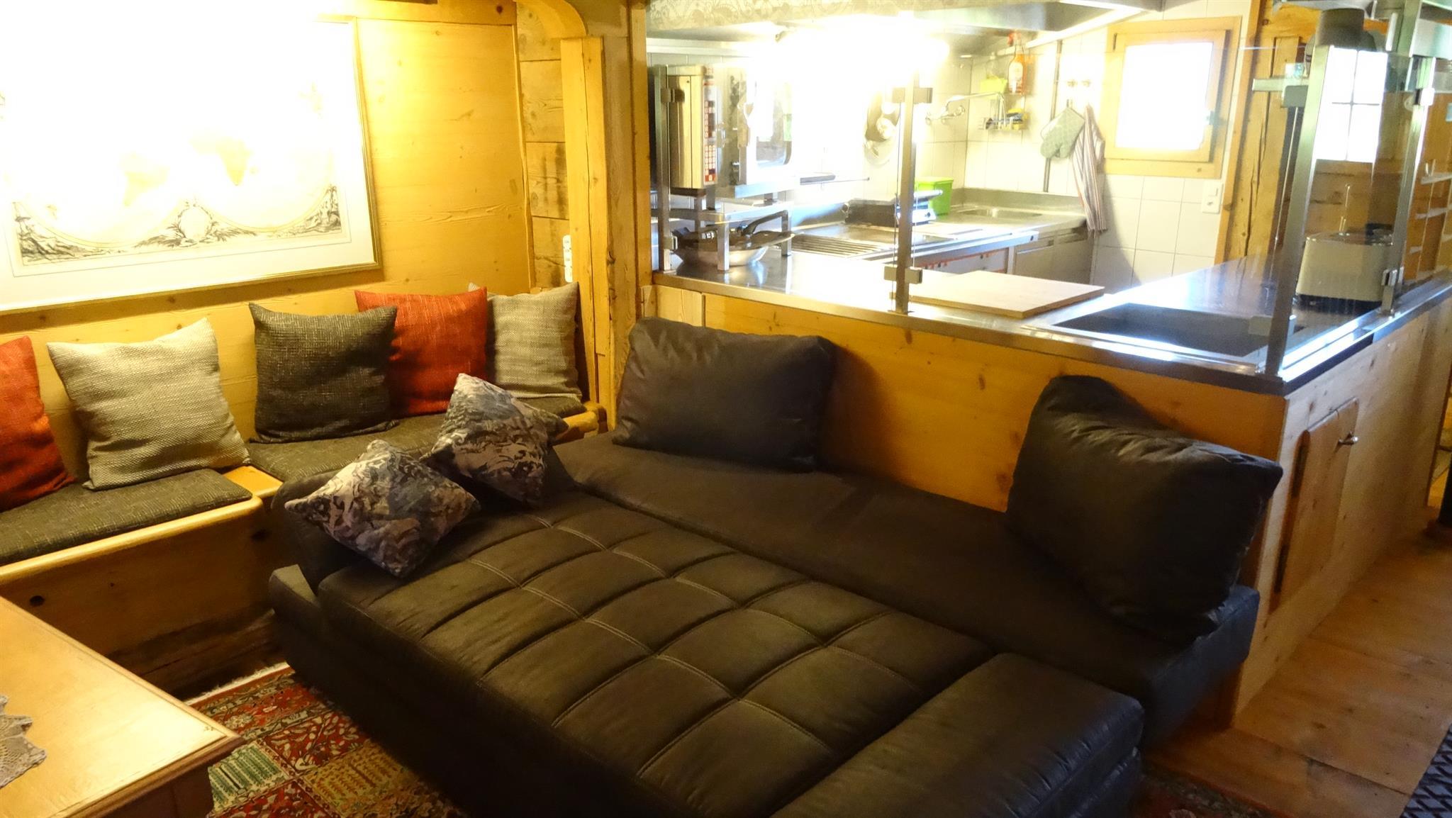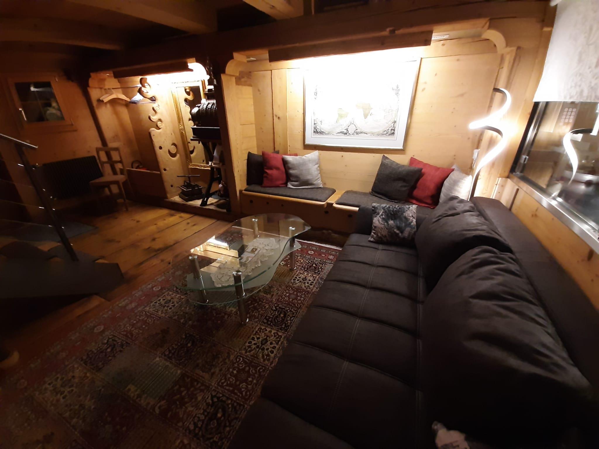 Erster Stock: Eckbank & Tisch für 6 Personen Polsterbett 140*200 cm. Ausziehbett 2x 90*200 cm. Der Schrank ist in einem Glashaus integriert. Die Wohnung verfügt über eine Terrasse mit Tisch und Stühlen. Das Rauchen ist nur auf der Terrasse erlaubt. Aussenparkplätze und Skiraum sind separat.