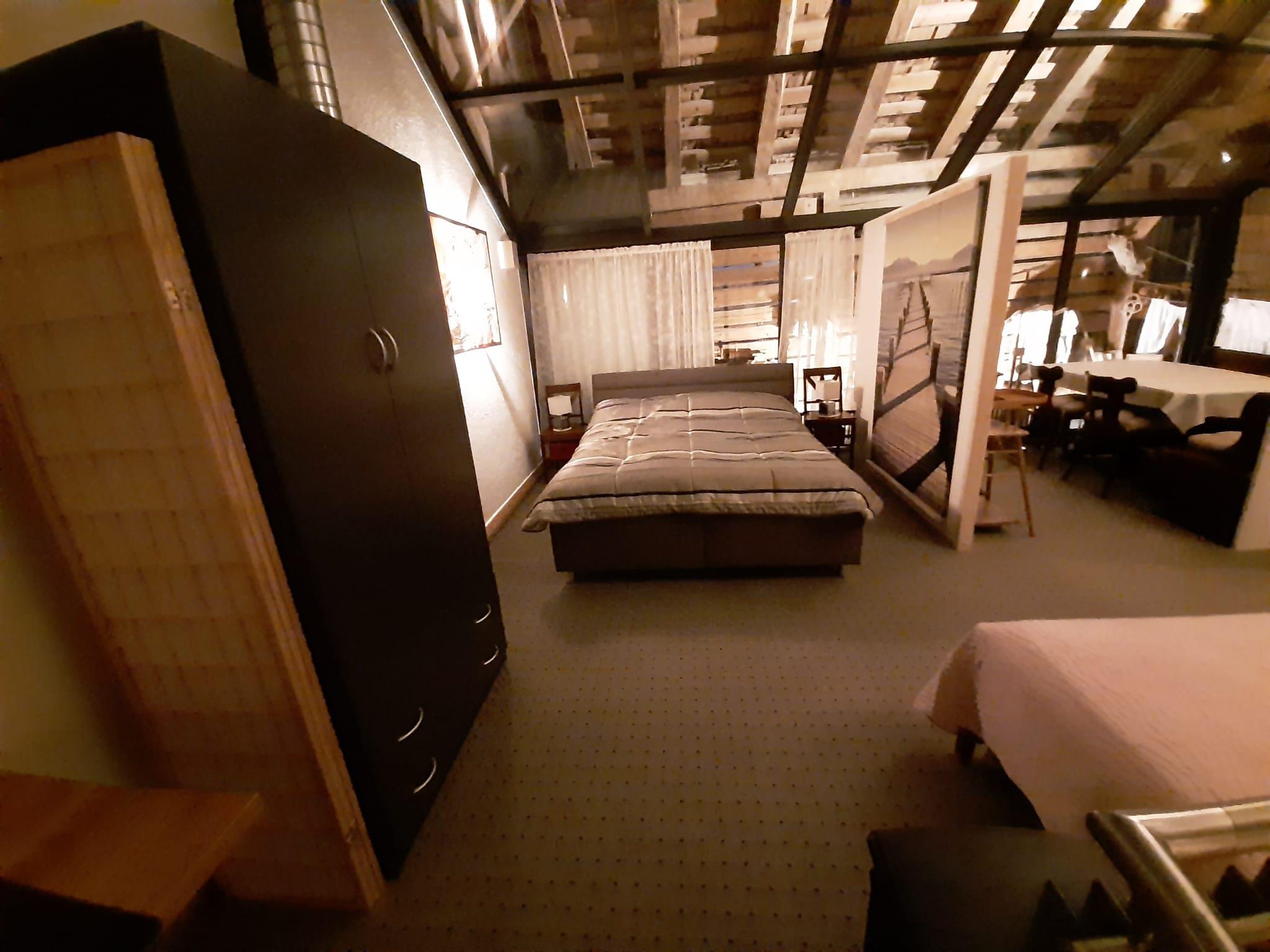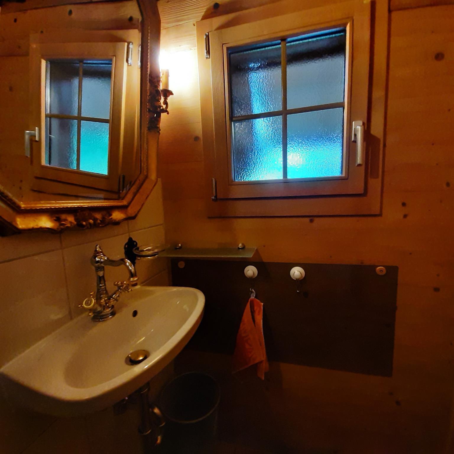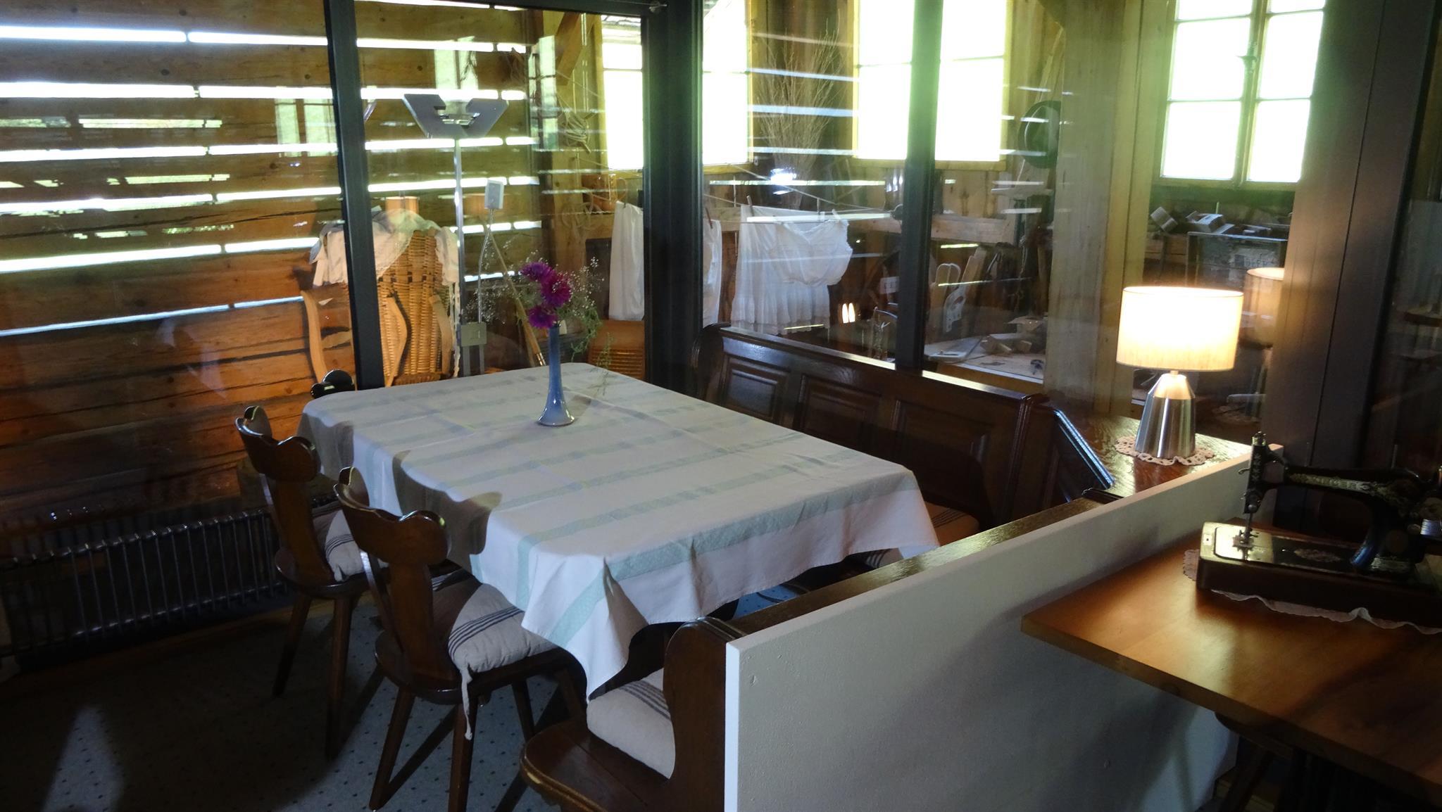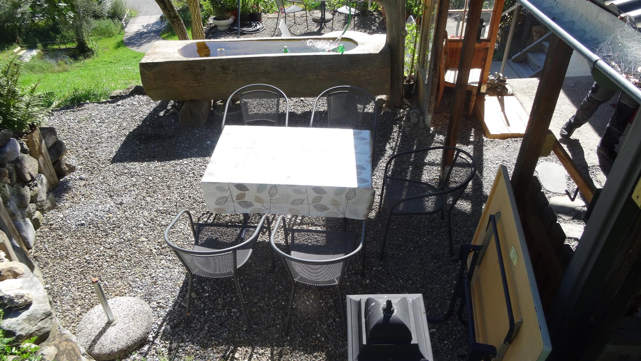 Erster Stock: Eckbank & Tisch für 6 Personen Polsterbett 140*200 cm. Ausziehbett 2x 90*200 cm. Der Schrank ist in einem Glashaus integriert. Die Wohnung verfügt über eine Terrasse mit Tisch und Stühlen. Das Rauchen ist nur auf der Terrasse erlaubt. Aussenparkplätze und Skiraum sind separat.