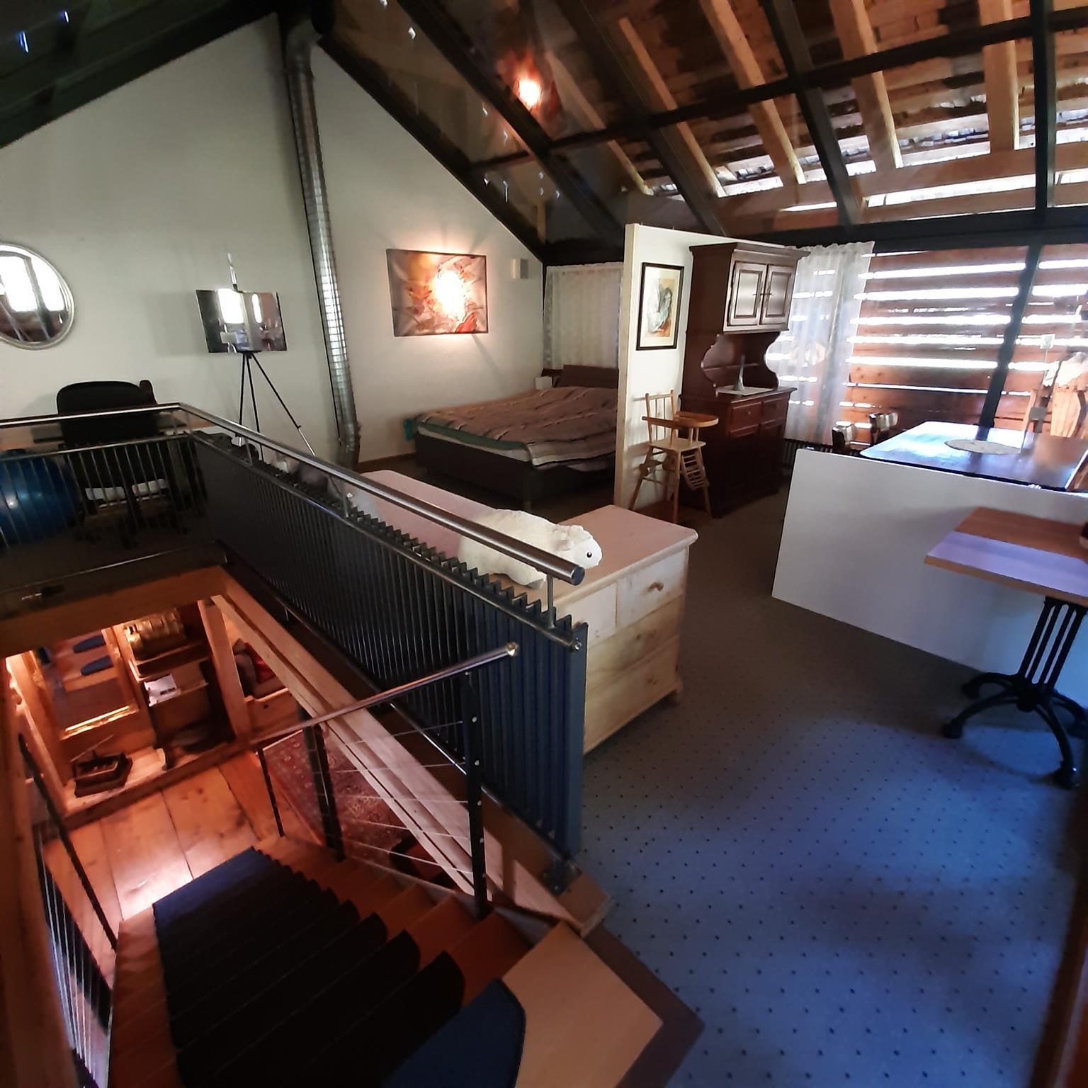 2 Zimmerwohnung – offene Maisonette auf 2 Stockwerken. Im Anbau eines Wohnhauses, ruhige Lage, einmalige Aussicht mit Terrasse. Ist bei der Talstation der Metschbahn, super Ausgangspunkt zum Skilaufen, direkt an der Loipe.