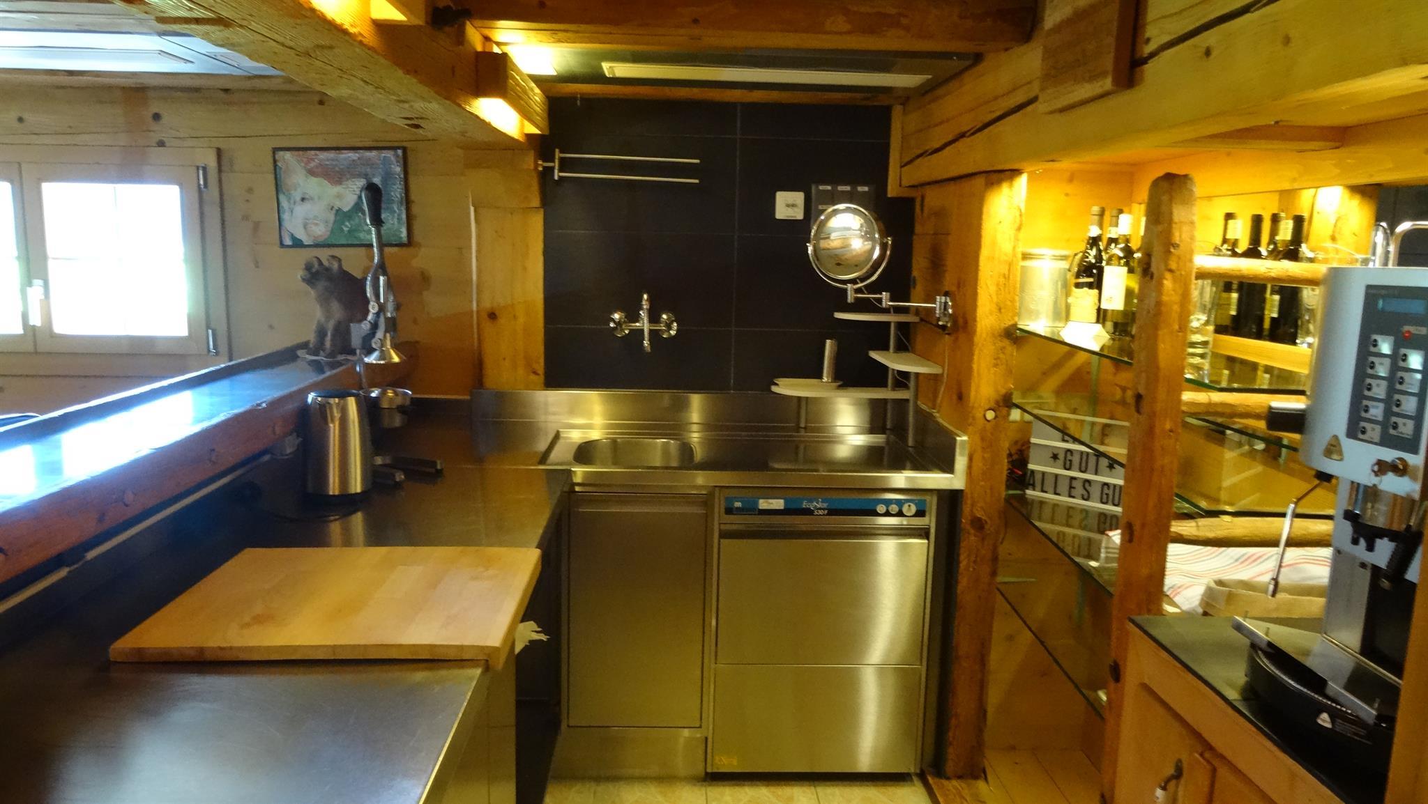 Maisonnette Parterre: Offene Küche mit Backofen, Steamer, Mikrowelle, Toaster und Kühlschrank. Bar mit Abwaschmaschine und Kaffeemaschine. Essecke bis 6 Personen. Bettsofa 140*200 cm. Sitzbank und Garderobe. Grosszügige Dusche, zwei separate WC mit Lavabo und Spiegel.