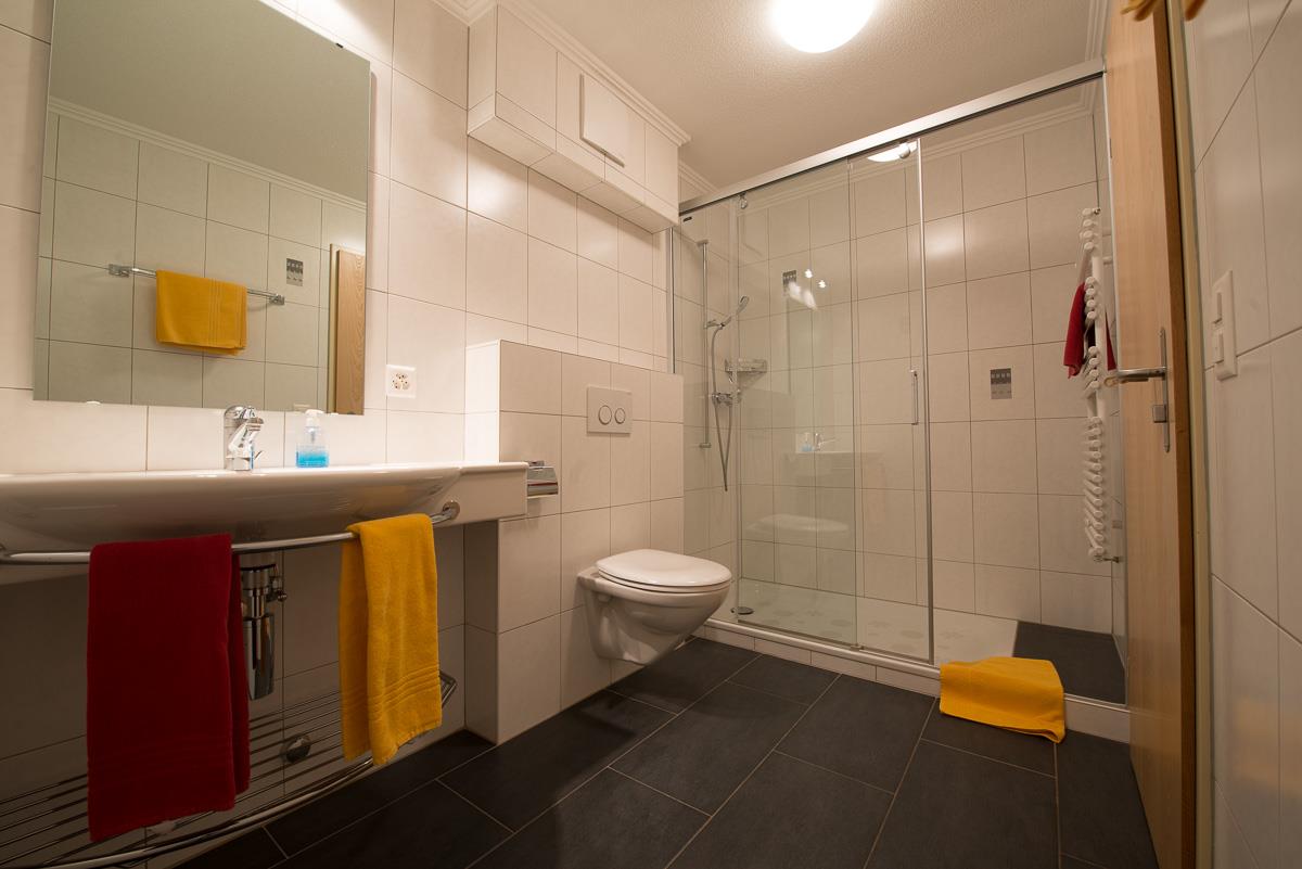 1 Dusche/WC, Haarföhn und Südbalkon. Die Wohnung ist ausgestattet mit Kabel-TV, Radio mit CD Player und kostenlosem ADSL Wireless LAN Internetzugang. Die Wohnung ist gemütlich.