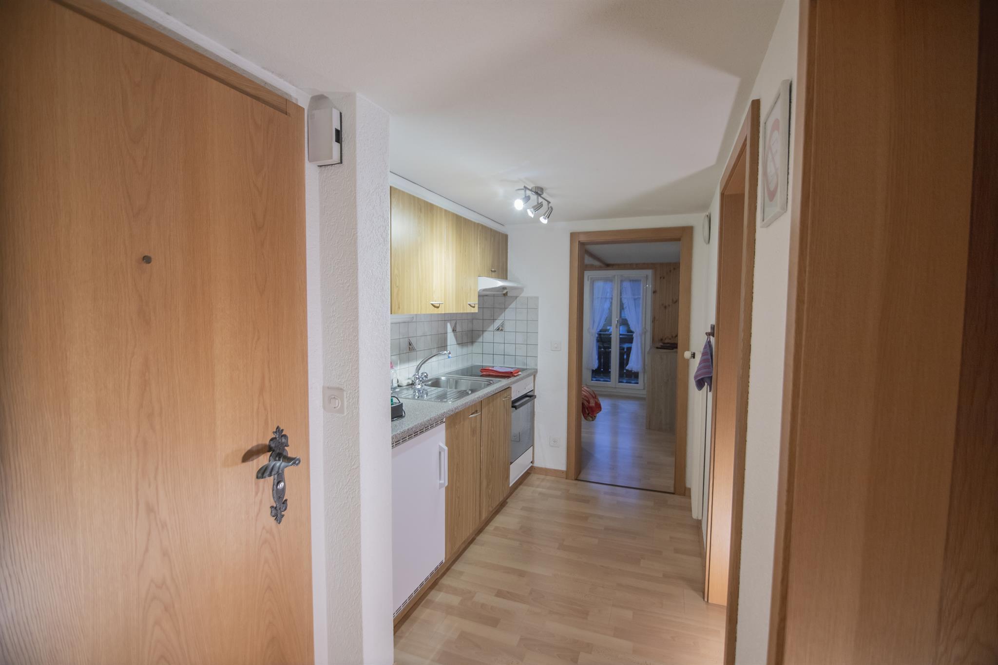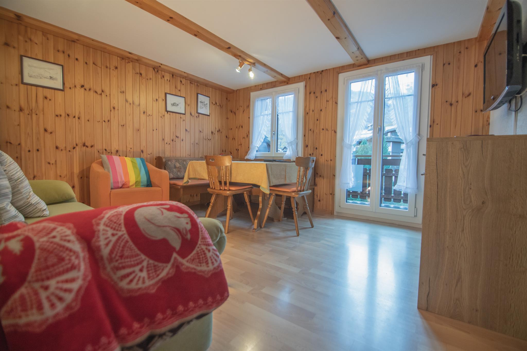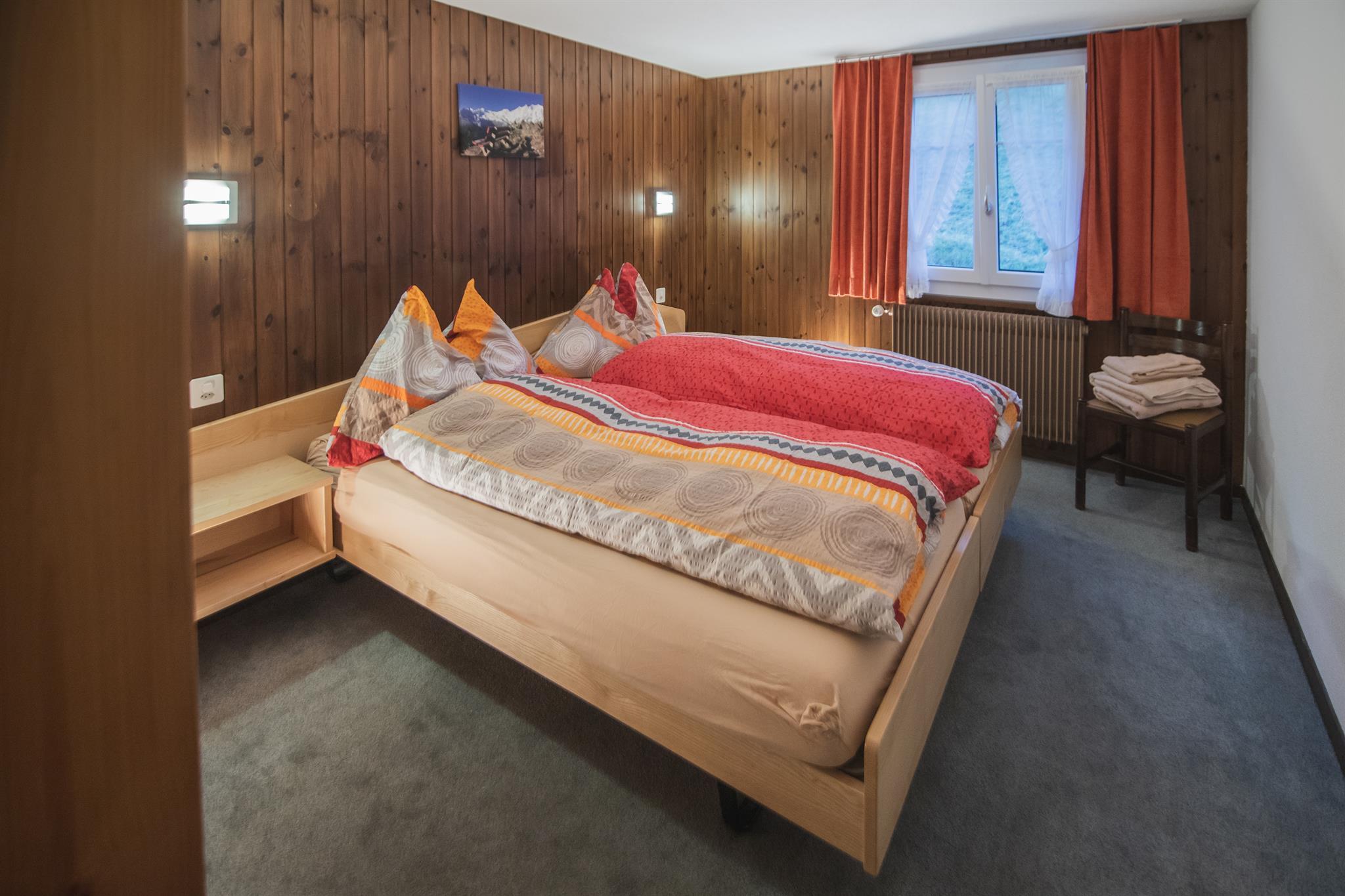 4-Zimmerwohnung (60 m2), 4.Stock, 2 Doppel- und 1 Einzelzimmer, Wohnzimmer, Kabelfernseher, Küche mit Geschirrspüler, Dusche sep. WC, Balkon Südwest mit Ausblick auf die Berge und Gletscher, gratis W-Lan. Haus im Chaletstil erbaut, Wohnungsausstattung rustikal und komfortabel. Zentrale und ruhige Lage, schöne Aussicht auf die Bergwelt. Kurtaxe wird separat einkassiert. Haustiere nicht gesattet.
